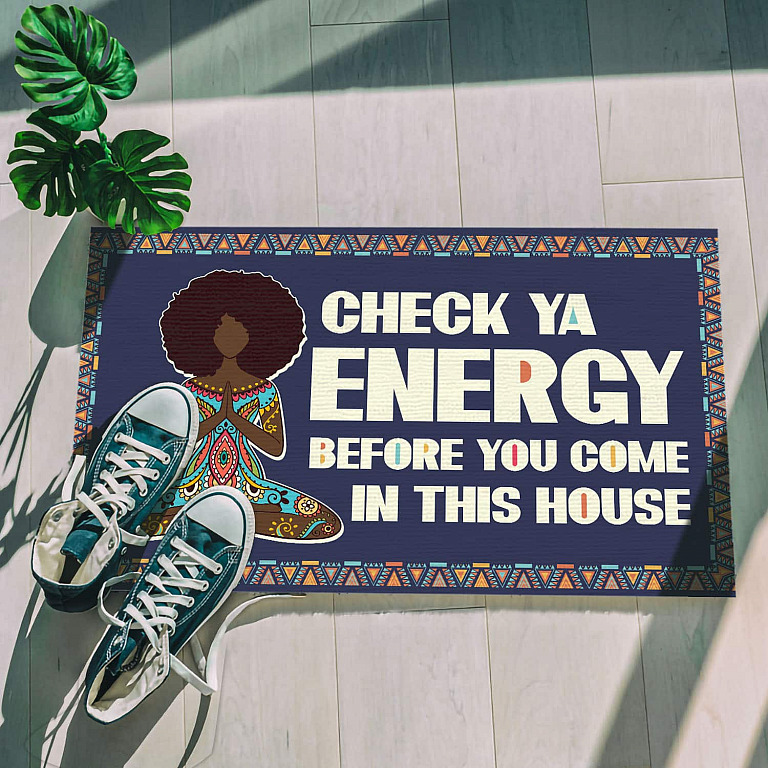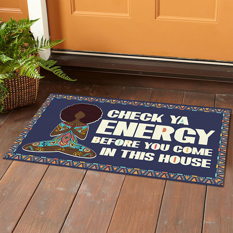 Let’s Shop Yoga Black Girl Check Ya Energy Before You Come In This House Indoor Doormat – Afro Girl Mediation Doormat!