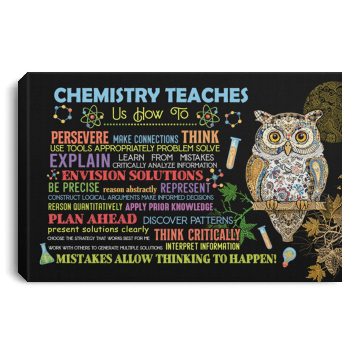 Shop Chemistry Teaches Us How to Persevere Make Connections Think Use Framed Canvas – Unframed Poster.