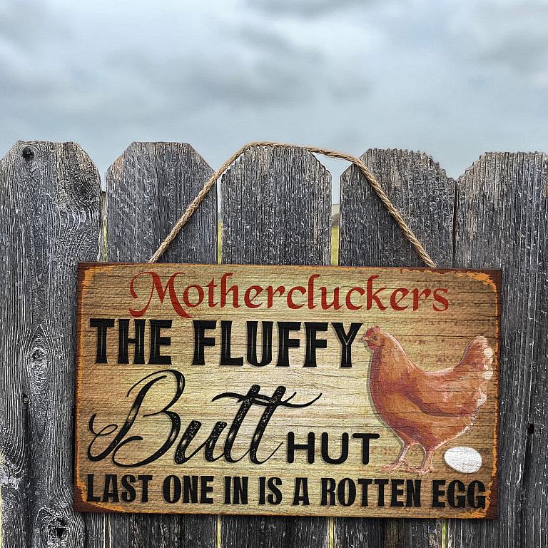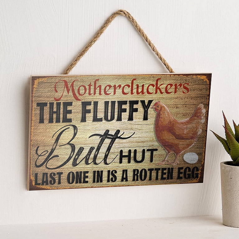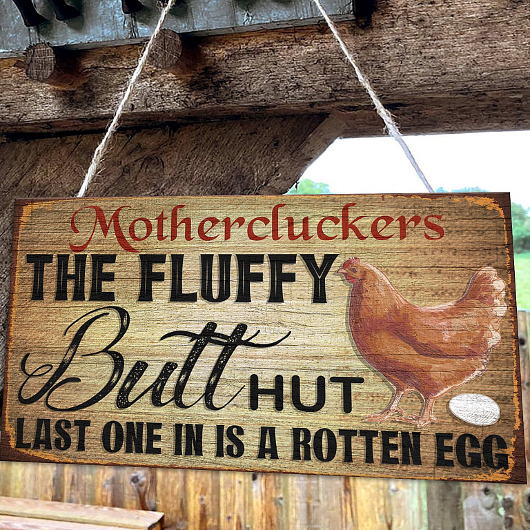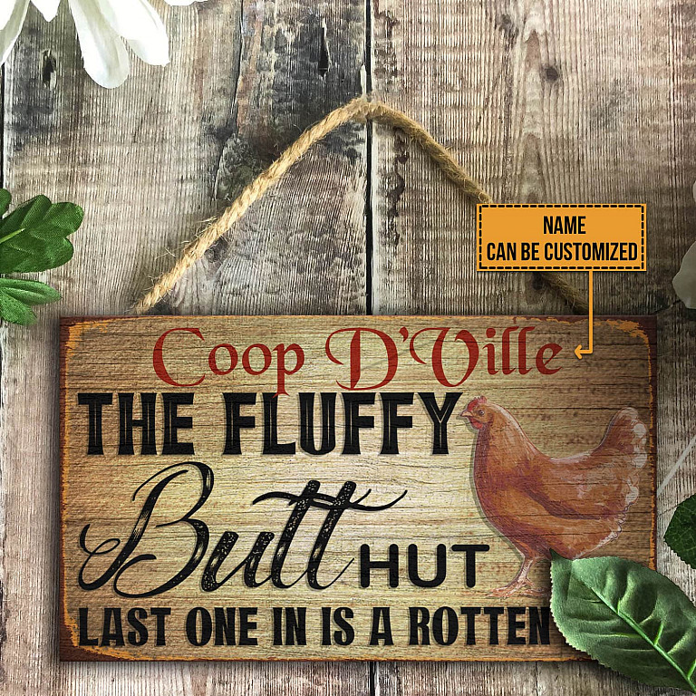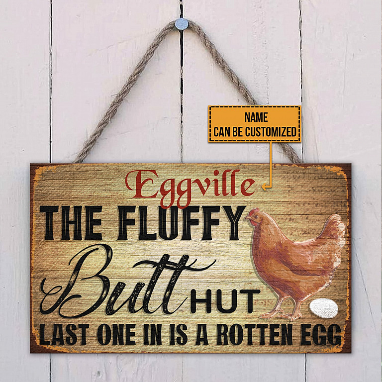 Let’s Shop Fluffy Butt Hut Chicken Coop Sign Personalized Decorative Wooden Door Sign!