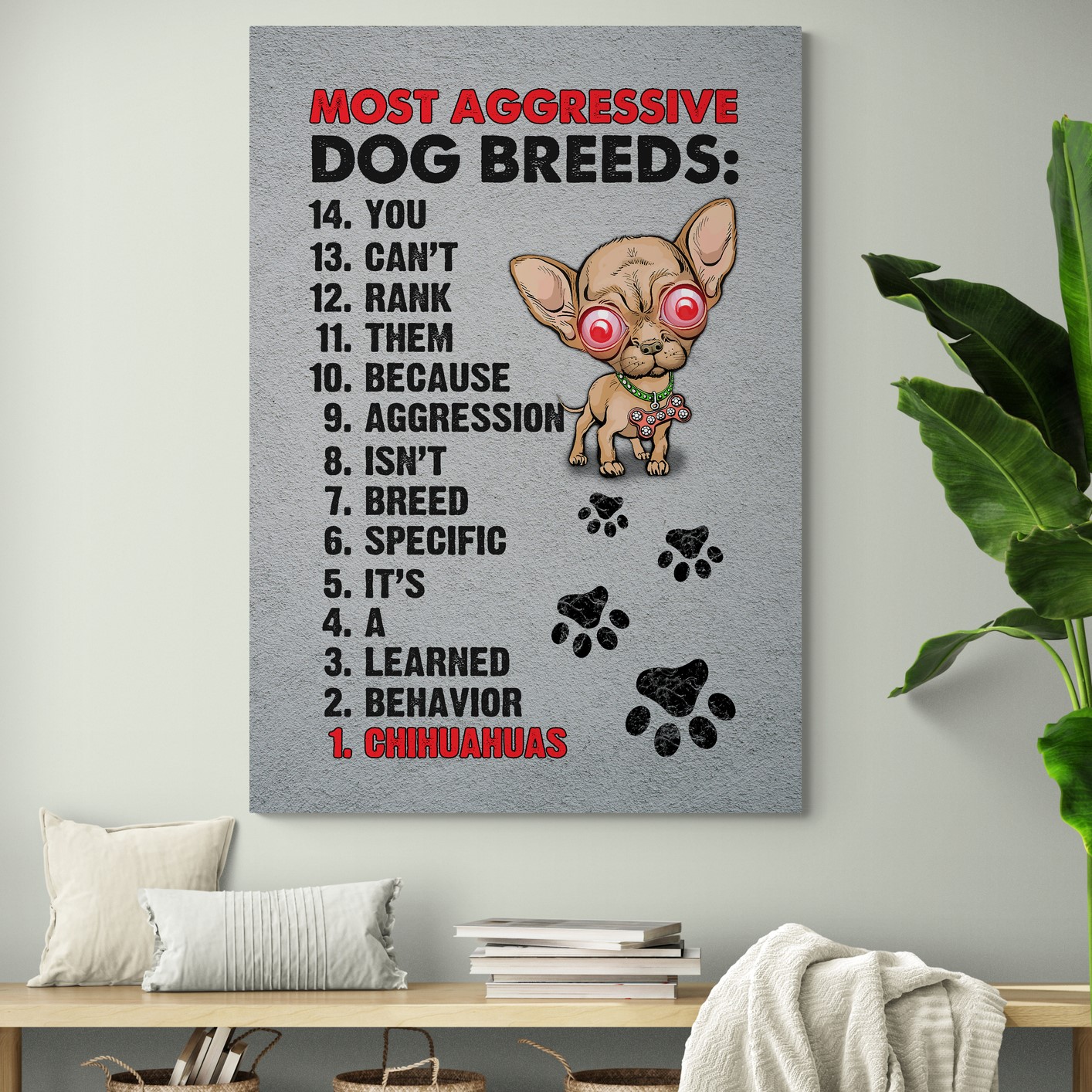 Let’s Shop Funny Chihuahua Canvas-Most Aggressive Dog Breeds Framed Canvas Prints-Unframed Poster-Home Decor Wall Art!