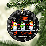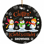 Shop Chillin’ With My Child’s Grade Snowmies Ceramic Circle Personalized Christmas Ornament.