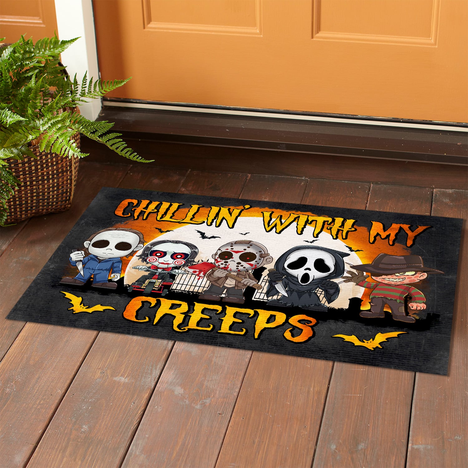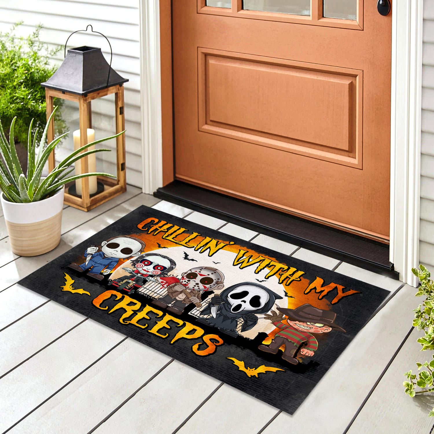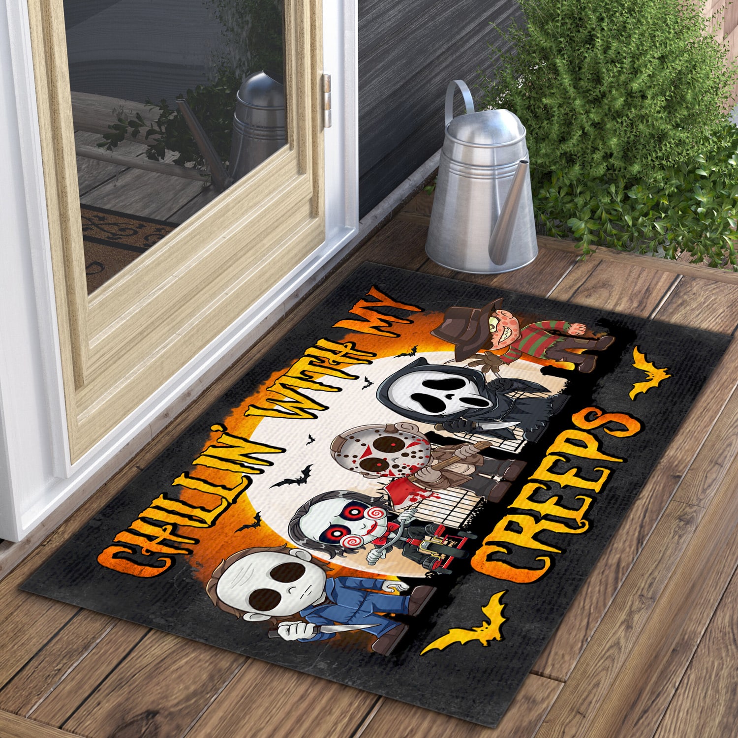 Let’s Shop Chillin’ With My Creeps Halloween Horror Movie Characters Doormat – Halloween Outdoor Indoor Doormat!