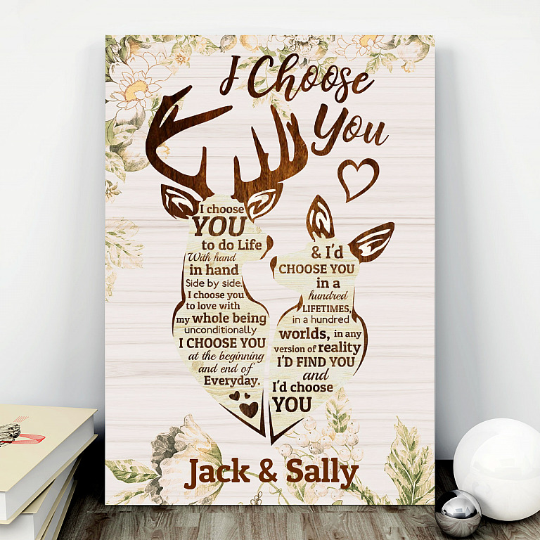 Are you spending too much time to find creative merchandise for you or suitable & special gifts for your mommy, your daddy, your son, your daughter, your children, your friends or someone you love? The struggle is over because we have various Choose You Canvas, Personalized Deer You and Me, Deer Couple Art, Personalized I Choose You Deer Couple Canvas, Deer Canvas, Couple Canvas, Gift for Lover, Wife and Husband Canvas, Valentine’s Day Gift, Anniversary Gifts which will make perfect presents for your beloveds. In order to make your present stand out, we have created lots of unique and awesome customized photo gifts & personalized designs.