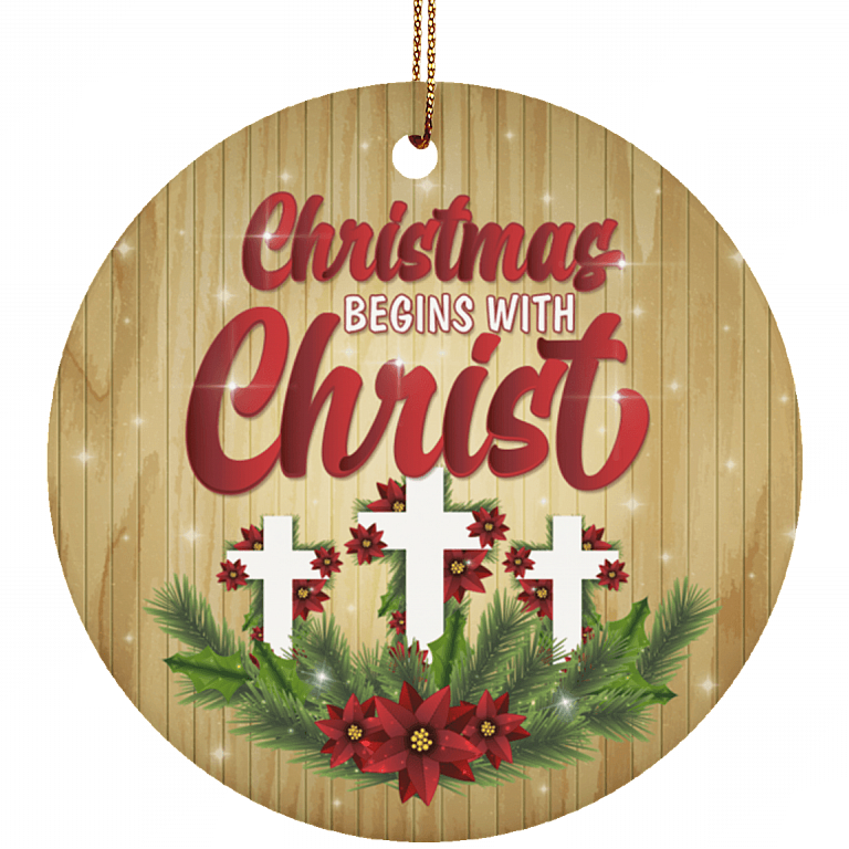 Shop Christmas Begins With Christ John 3:16 Tree Decorative Christmas Flat Circle Porcelain Ceramic Ornament Keepsake.