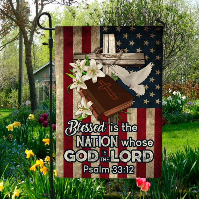 Let’s Shop Blessed Is The Nation Whose God Is The Lord Christian Outdoor Indoor Garden Flag – House Flag – Wall Flag!