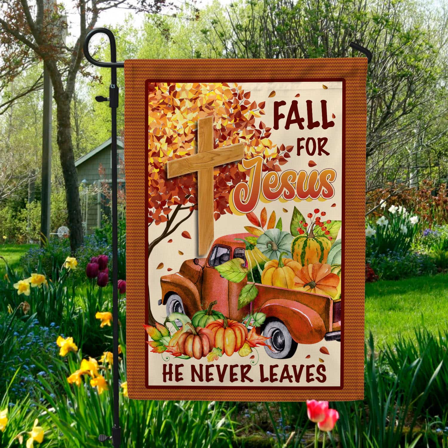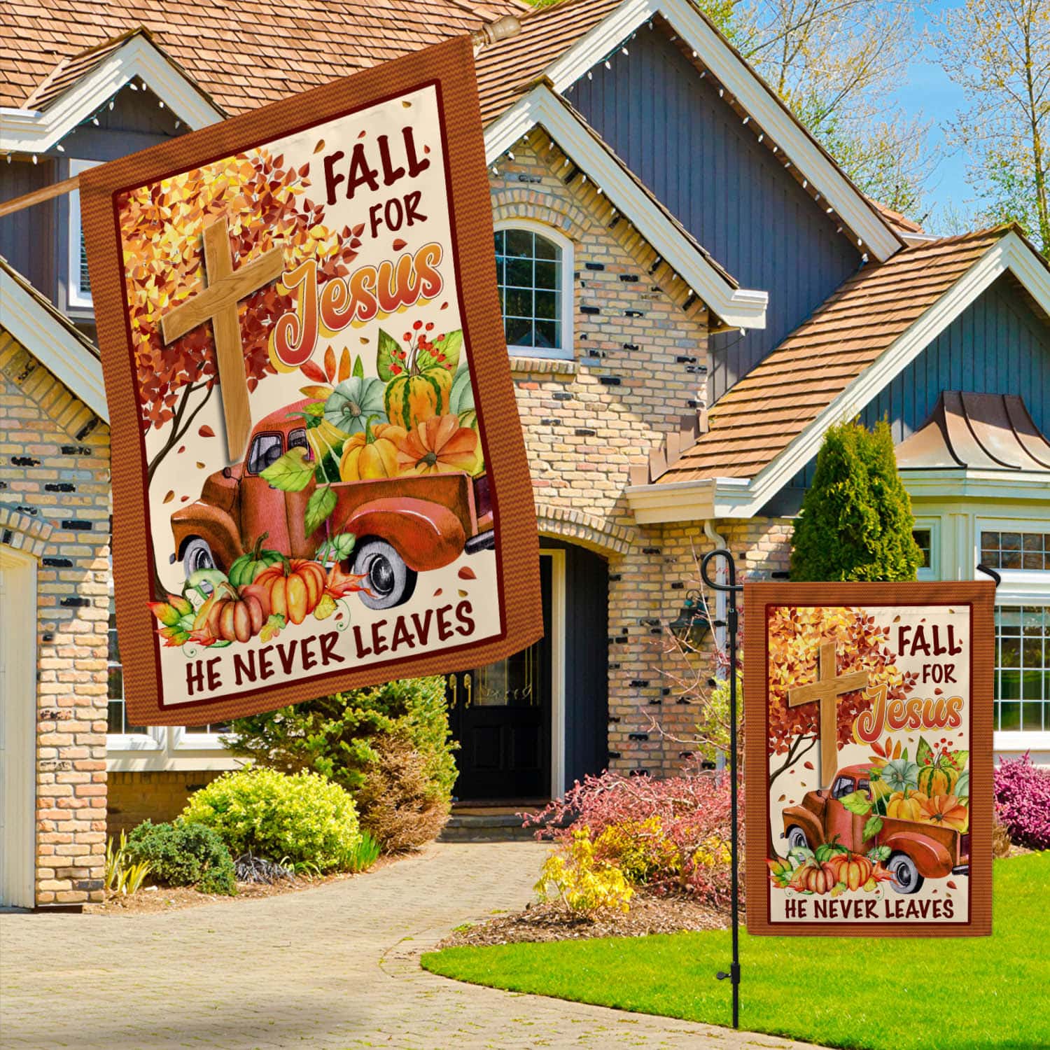 Let’s Shop Fall For Jesus He Never Leaves Decorative Garden Flag – Jesus House Flag – Wall Flag!