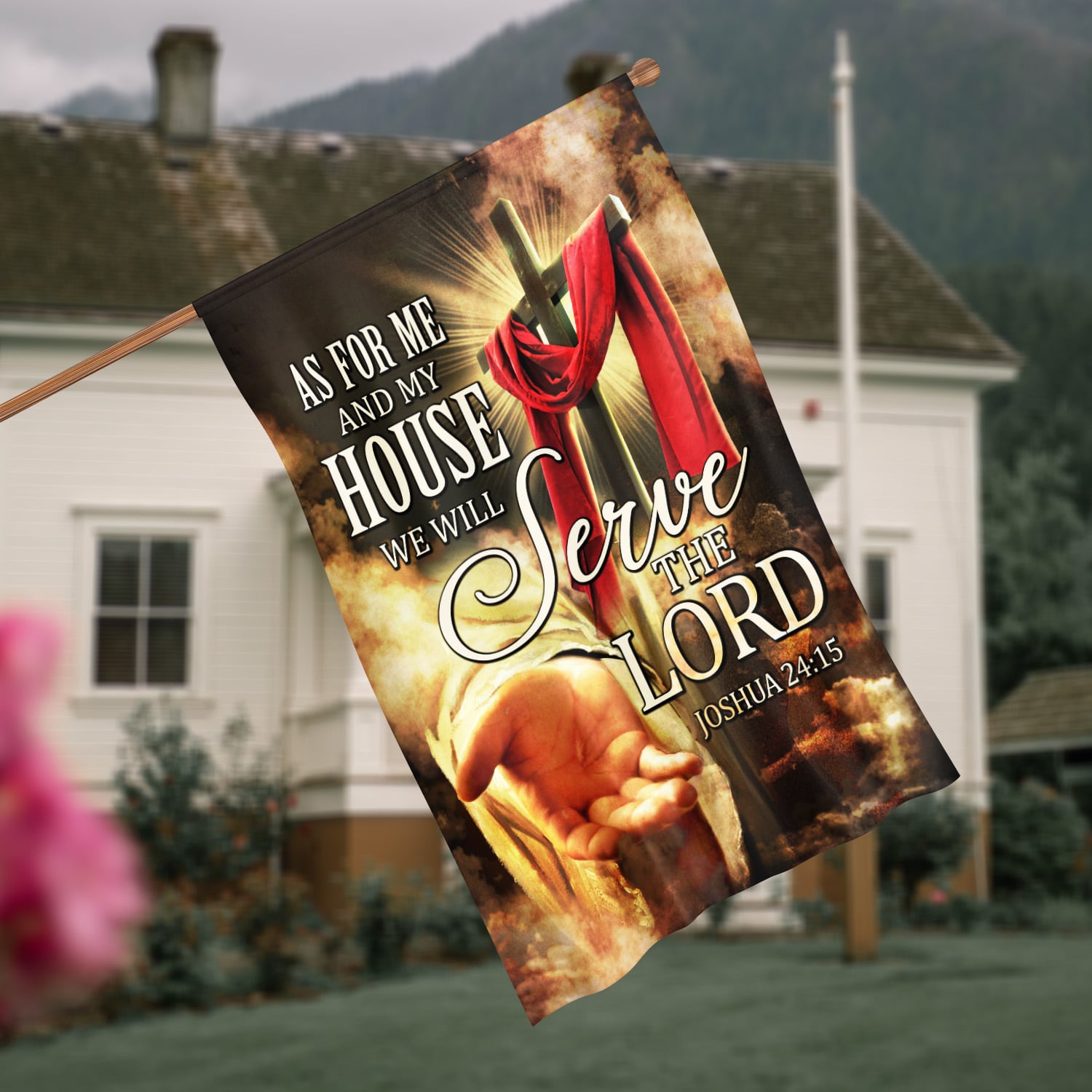 Let’s Shop Jesus Christ As For Me And My House We Serve The Lord Joshua 24:15 Garden Flag – Christian Cross House Flag!