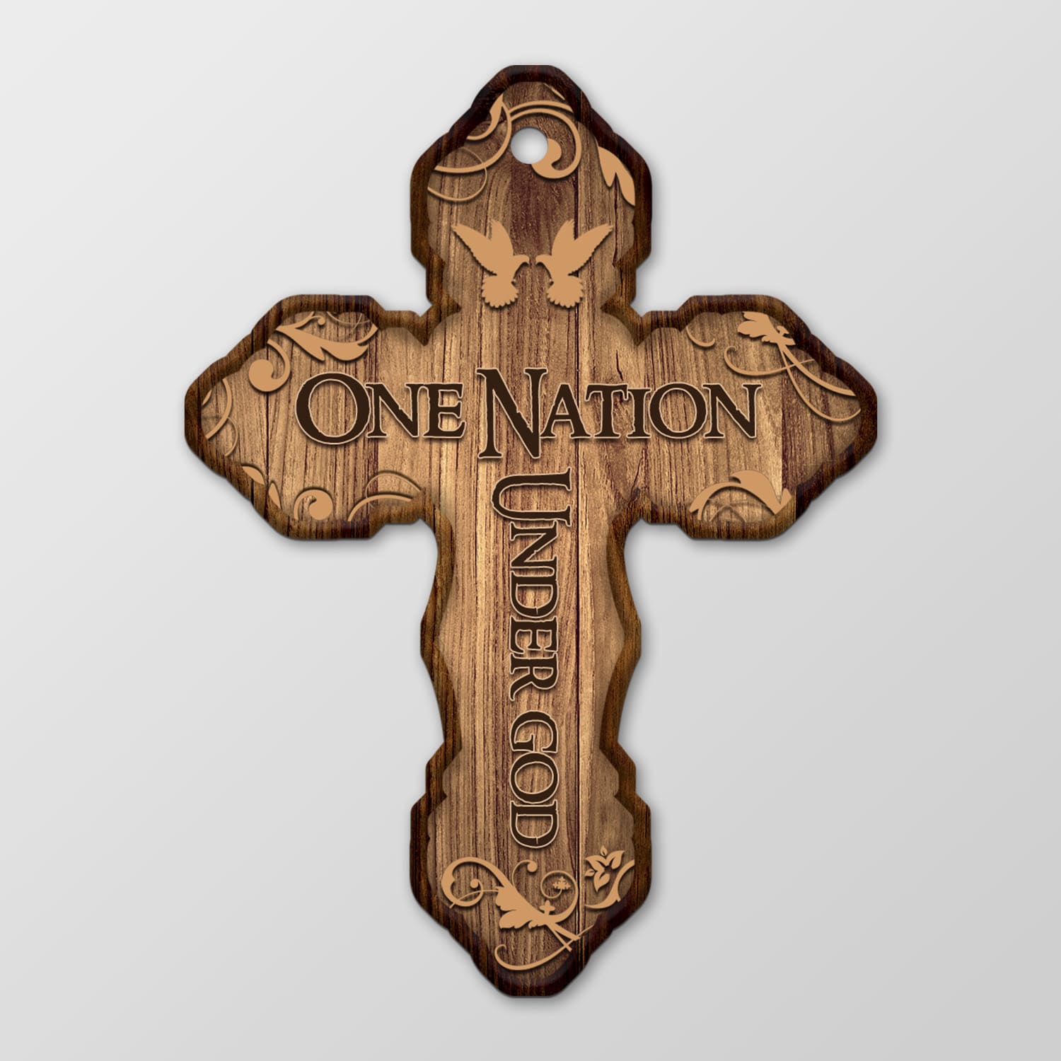 Let’s Shop One Nation Under God Cross Decorative Custom Shaped Wooden Christmas Ornament Keepsake!
