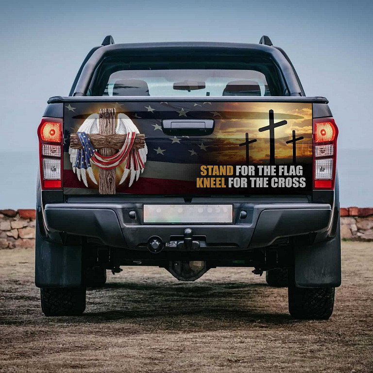Let’s Shop Stand For The Flag Kneel For The Cross Christian Jesus Patriotic Truck Tailgate Decal Sticker Wrap – Bumper Sticker For Car!