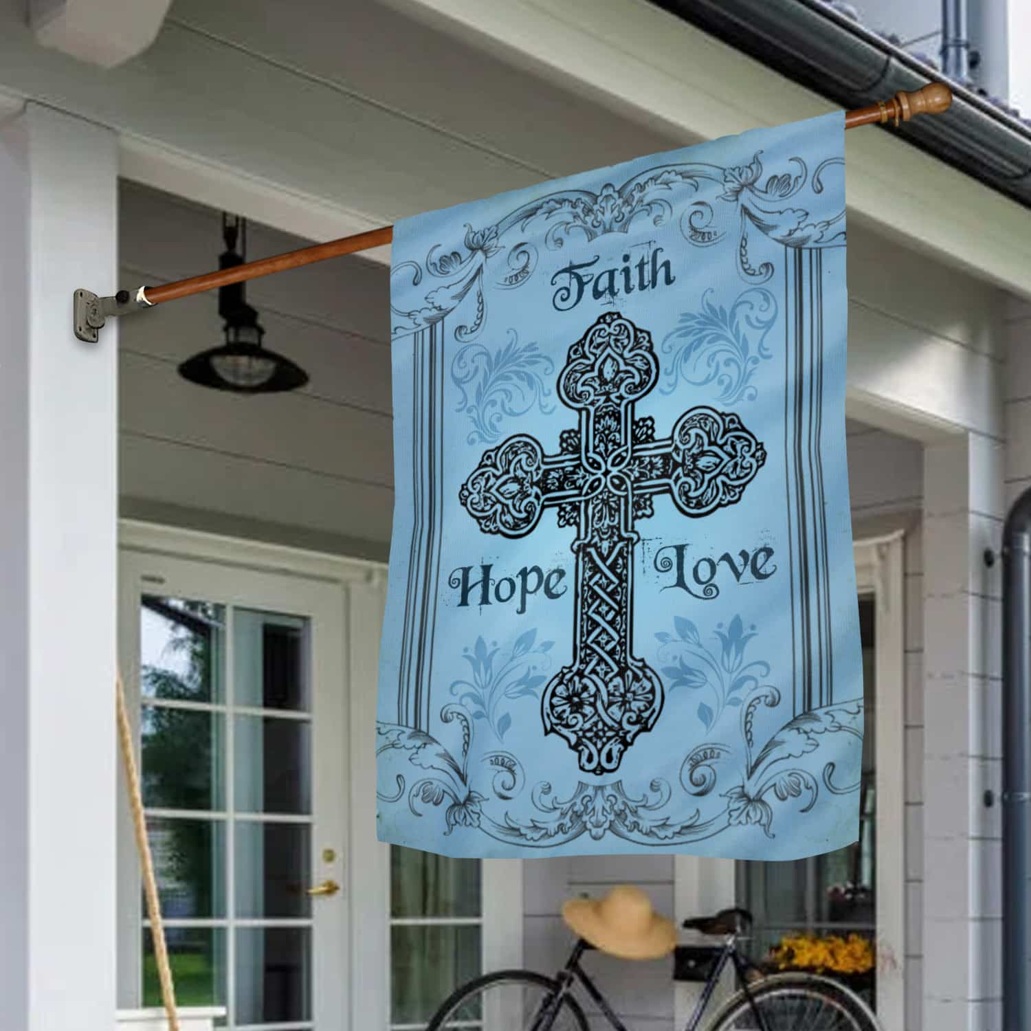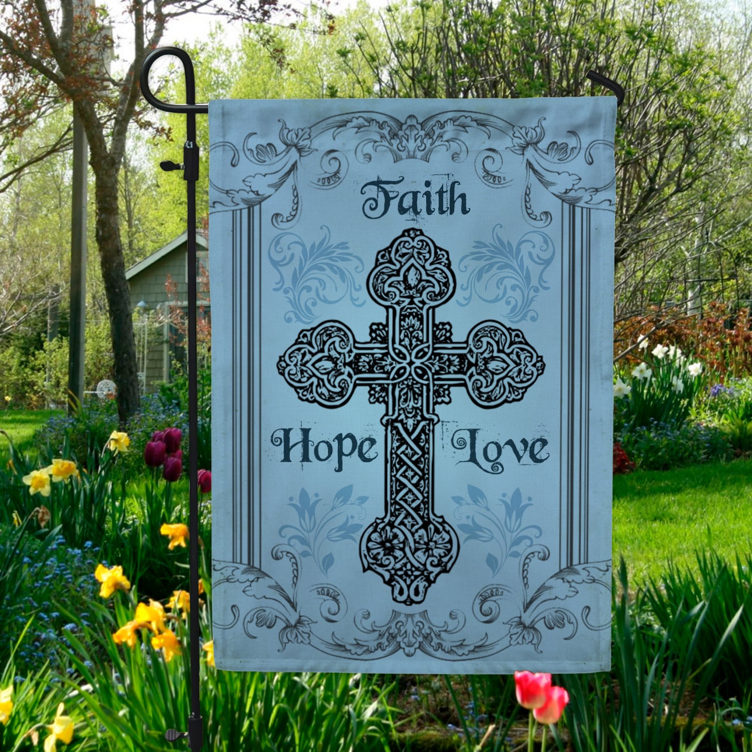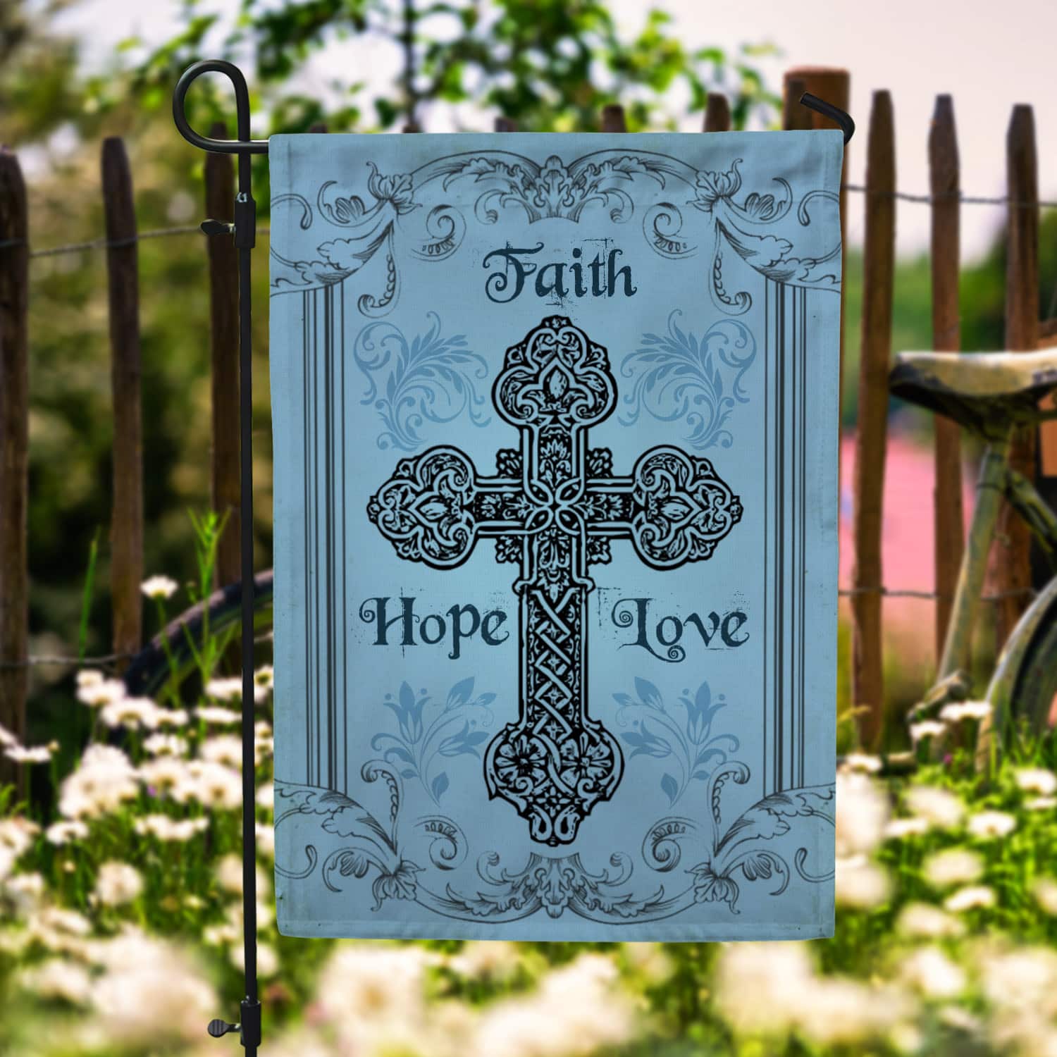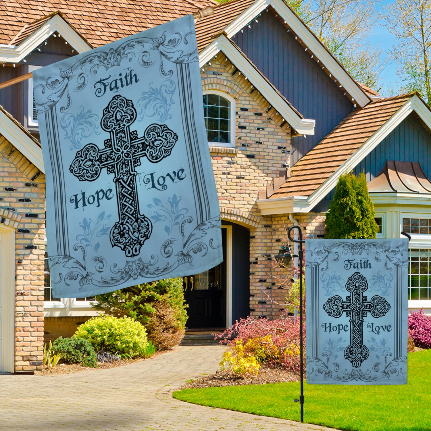Let’s Shop Faith Hope Love Religious Cross Easter Garden Flag – Christian House Flag – Faith Hope Love Flag!