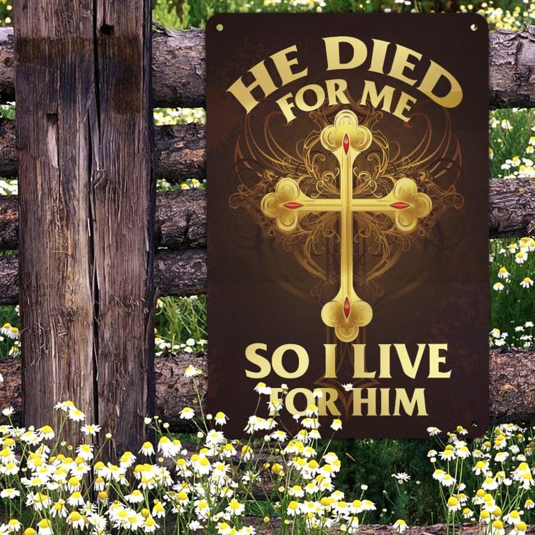 Let’s Shop He Died for Me so I Live for Him American Cross Faith Metal Sign – Religious Wall Decor Sign Garden Sign!