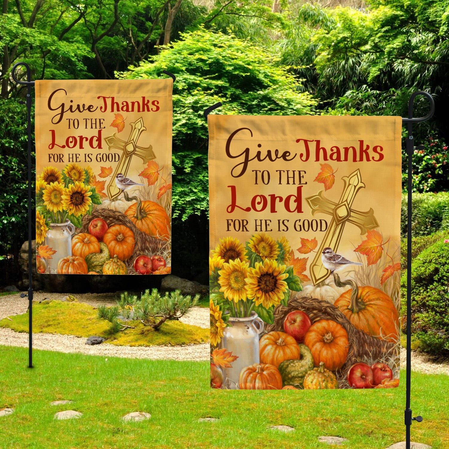 Let’s Shop Give Thanks to the Lord for He Is Good Garden Flag – House Flag – Wall Flag!