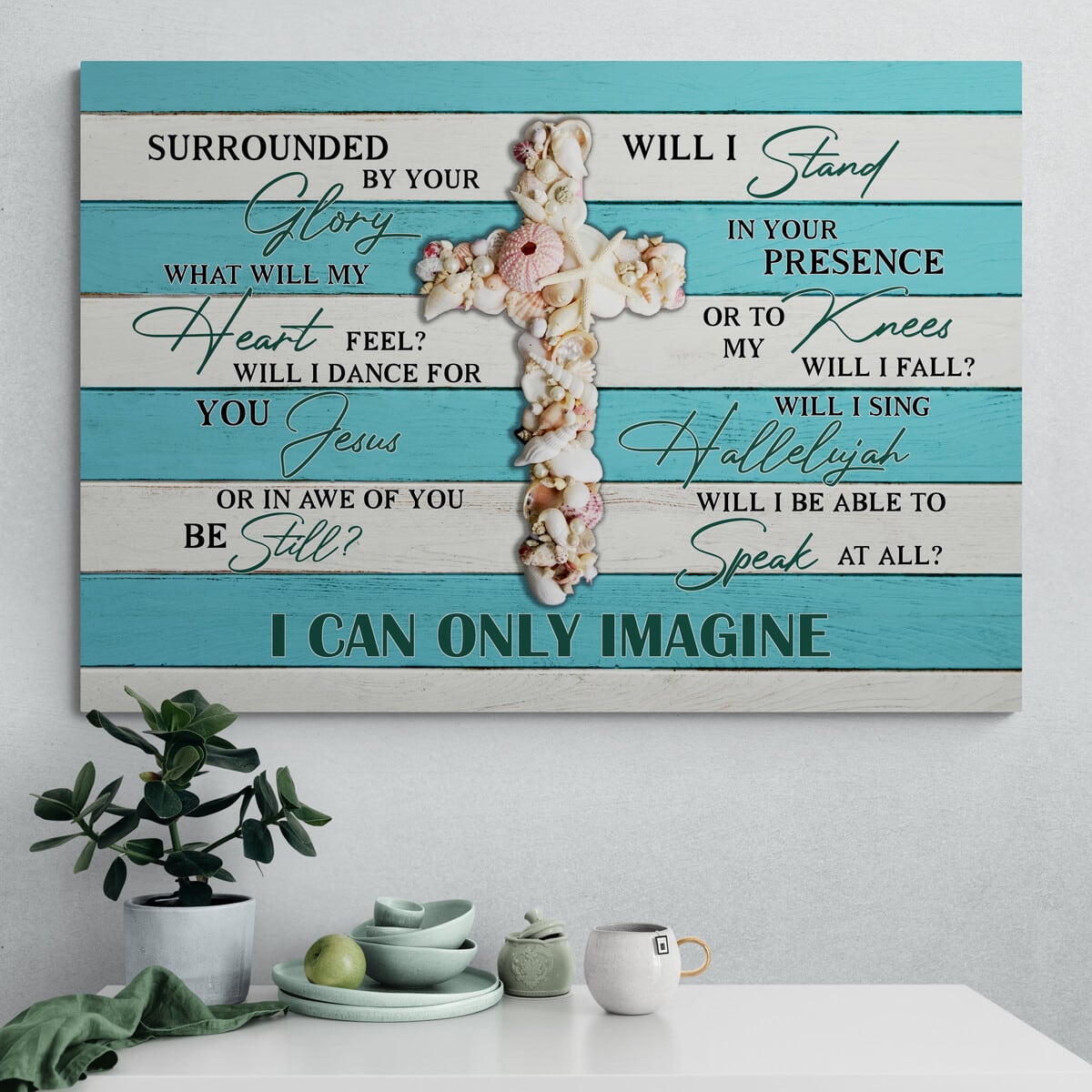 Let’s Shop Seashell Cross Surrounded by Your Glory What Will My Heart Feel Framed Canvas – Ocean Beach Unframed Poster!