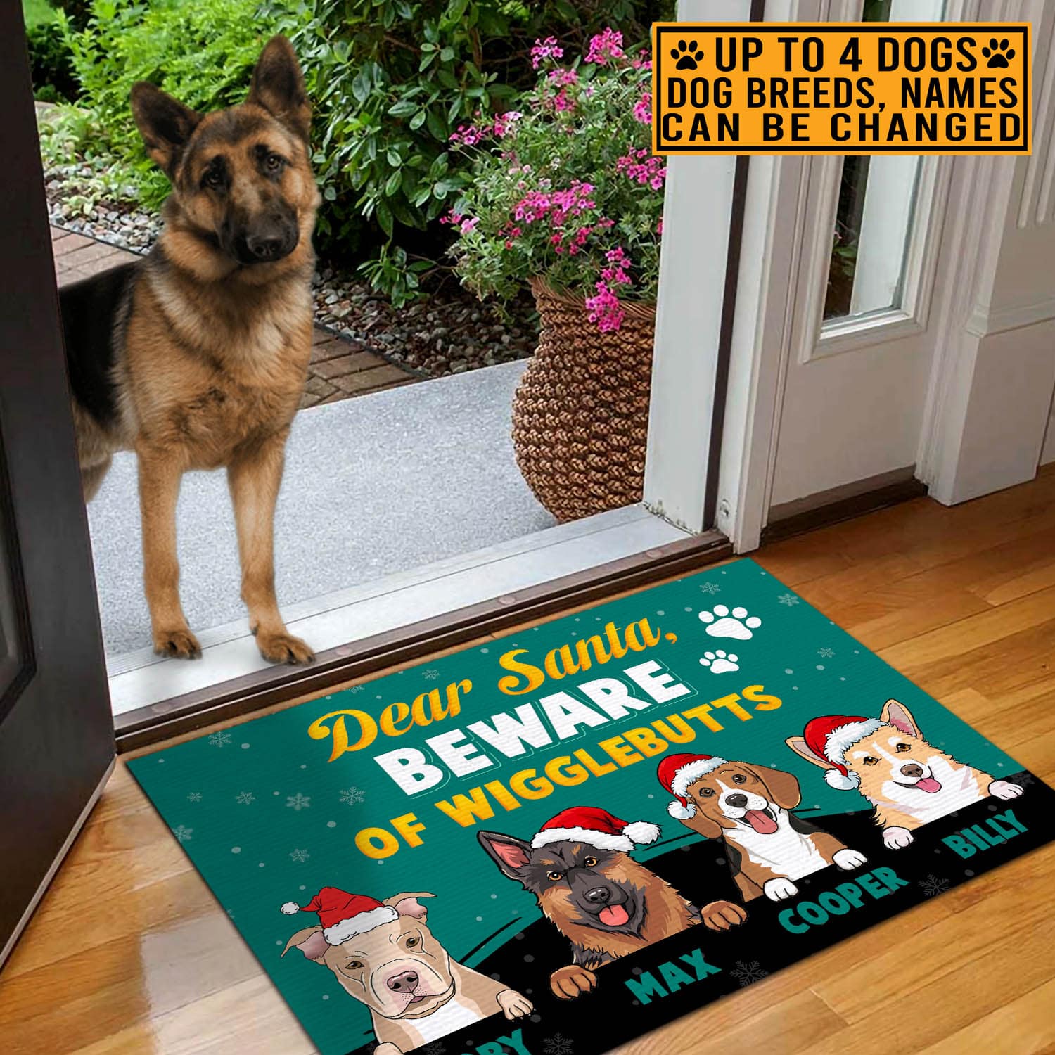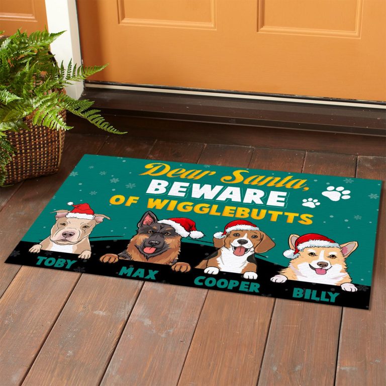 Let’s Shop Personalized Dog Breeds Dear Santa Beware Of Wigglebutts House Doormat – Custom Christmas Dog Outdoor Mat!
