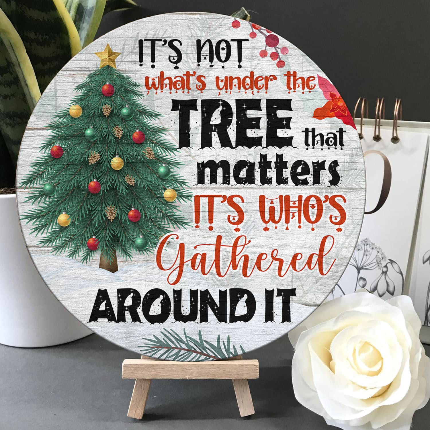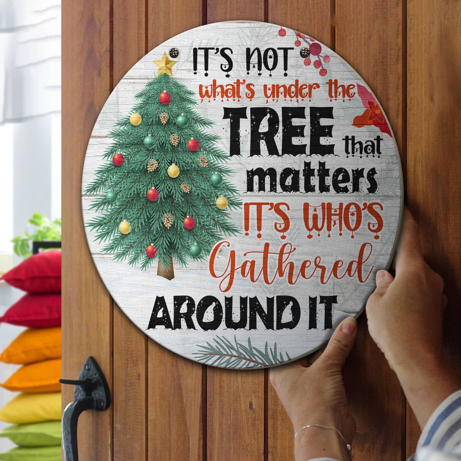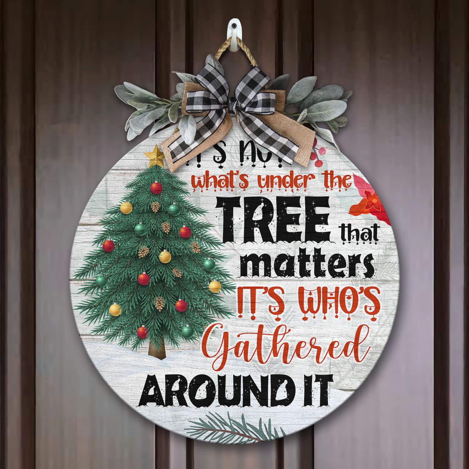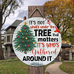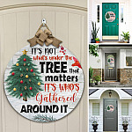 Let’s Shop It’s Not What’s Under the Tree that Matters It’s Who’s Gathered Around It Decorative Circle Wooden Door Sign – Front Porch Sign!