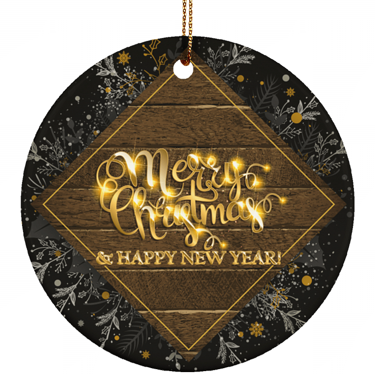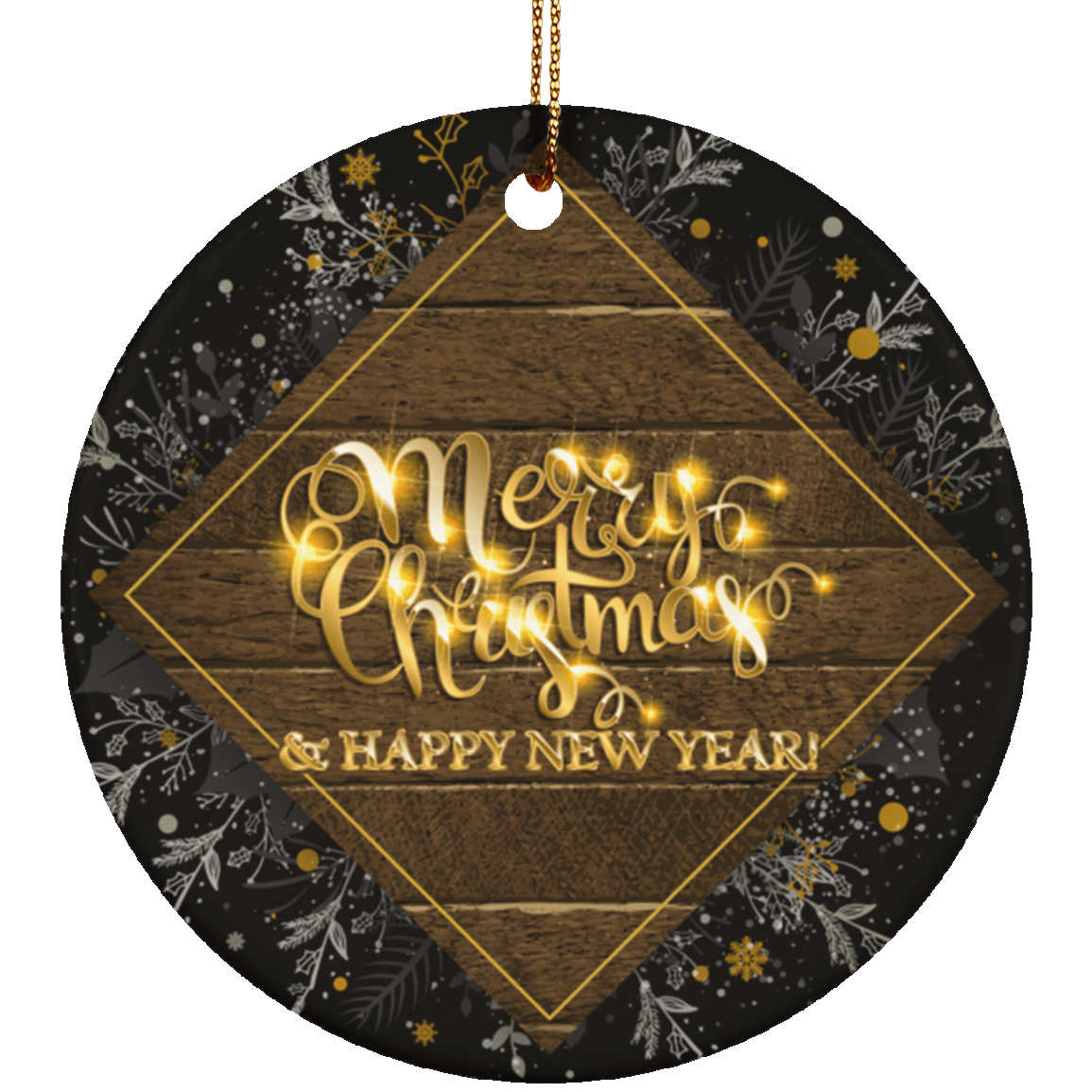 Merry Christmas and Happy New Year Decorative Holiday Gift Flat Circle Porcelain Ceramic Ornament Keepsake