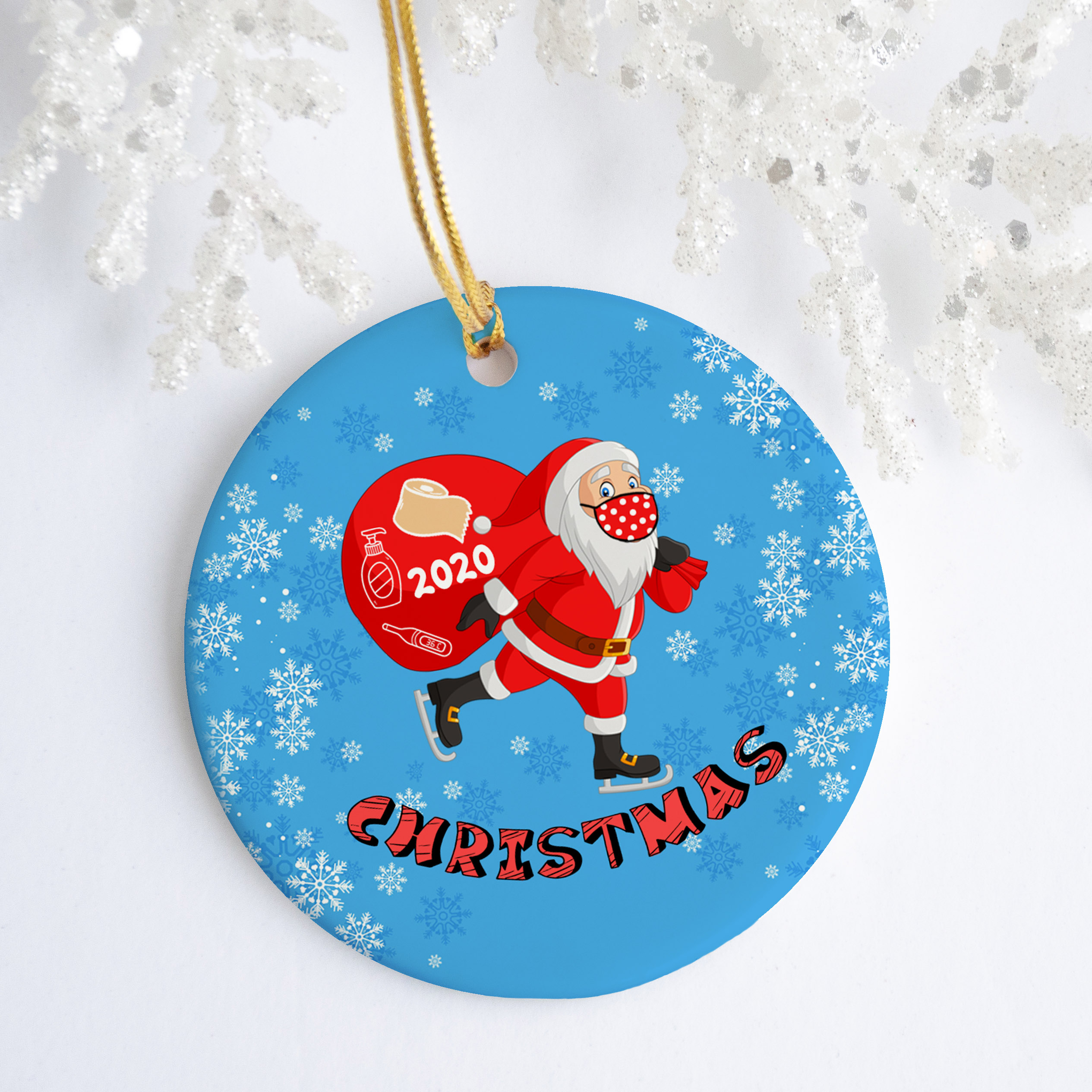 Let’s Shop Merry Christmas Santa Claus Snowflakes Toilet Paper 2020 Circle Ornament – Holiday Pandemic Gift!