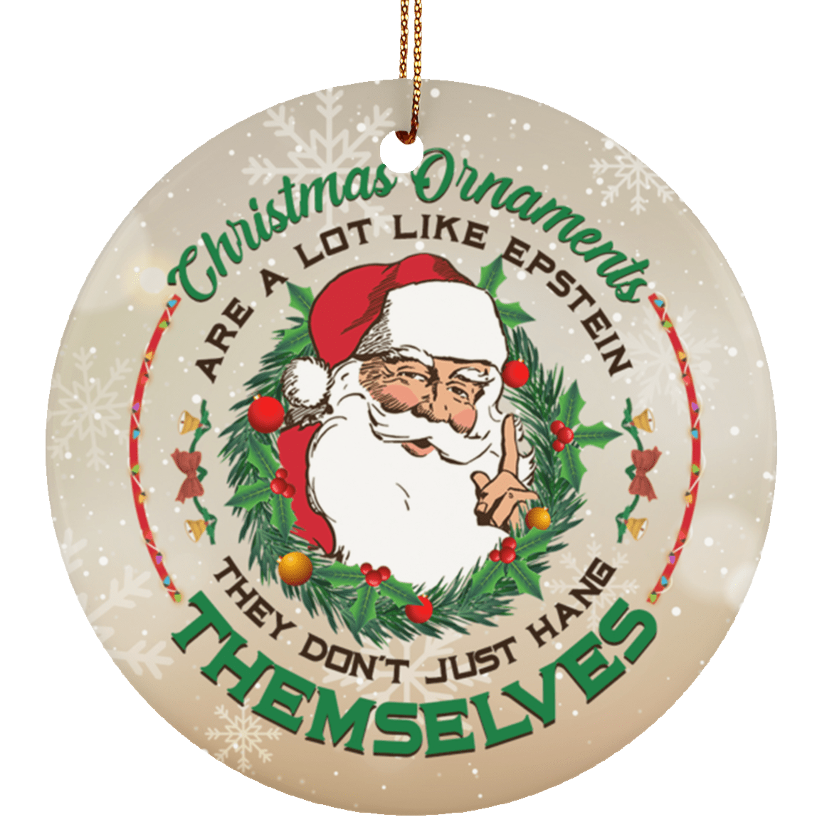 Shop Christmas Ornament Are A Lot Like Epstein Keepsake – Funny Xmas Saying Circle Porcelain Ceramic Ornament.
