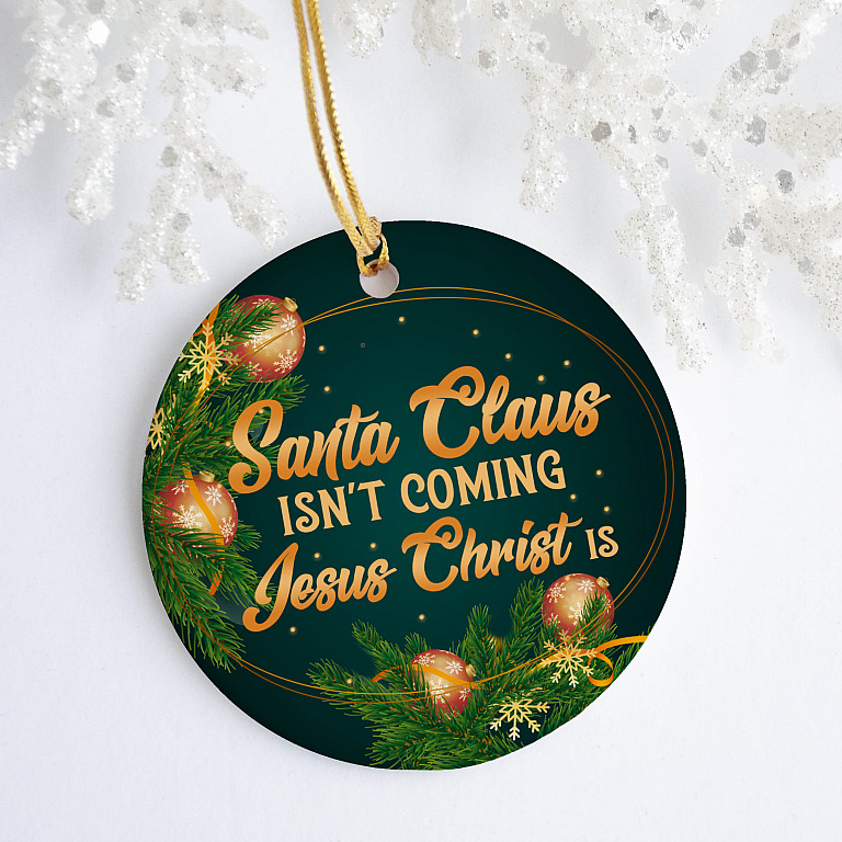 Let’s Shop Santa Claus Isn’t Coming Jesus Christ Is Decorative Christmas Ornament – Holiday Flat Circle Ornament!