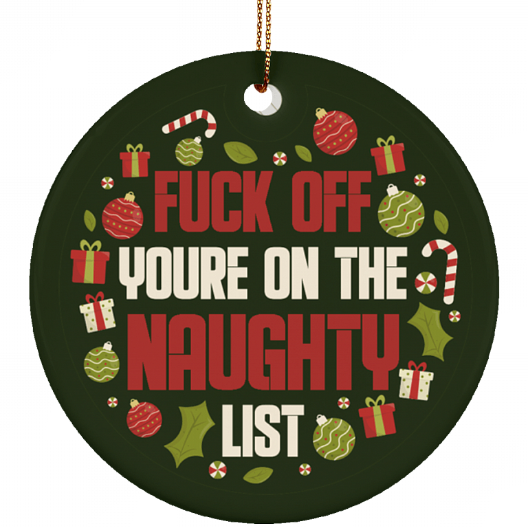 Fu-Ck Off You’re on the Naugh-Ty List Christmas Ceramic Circle Ornament
