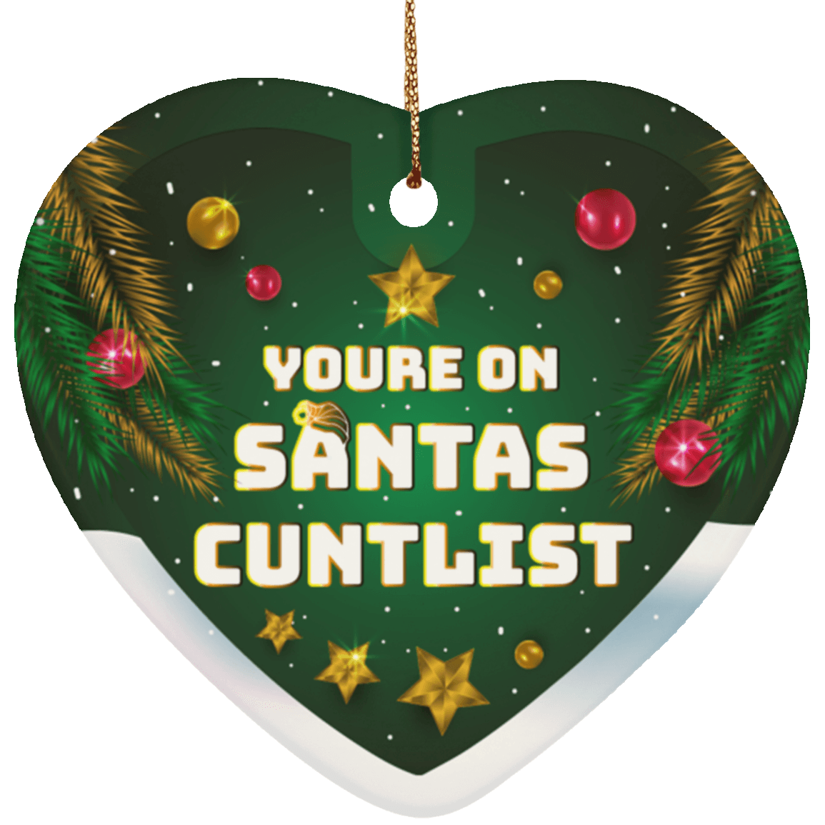 Youre on Santas Cunt List Ornament Decorative Christmas Ornament-Holiday Flat Heart Porcelain Ceramic Ornament