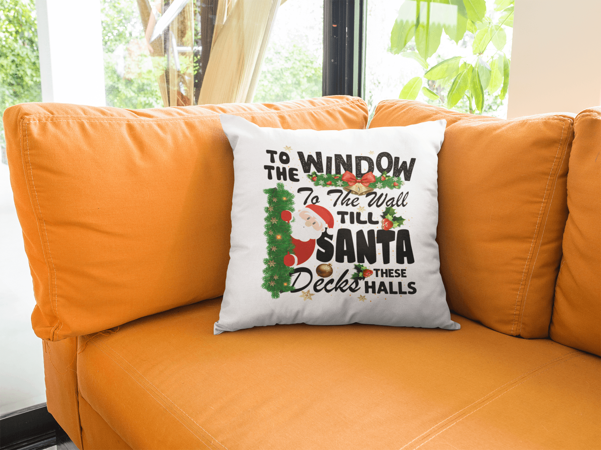 Shop To The Window To The Wall Til Santa Decks These Halls Christmas Throw Pillow – Decorative Pillow.