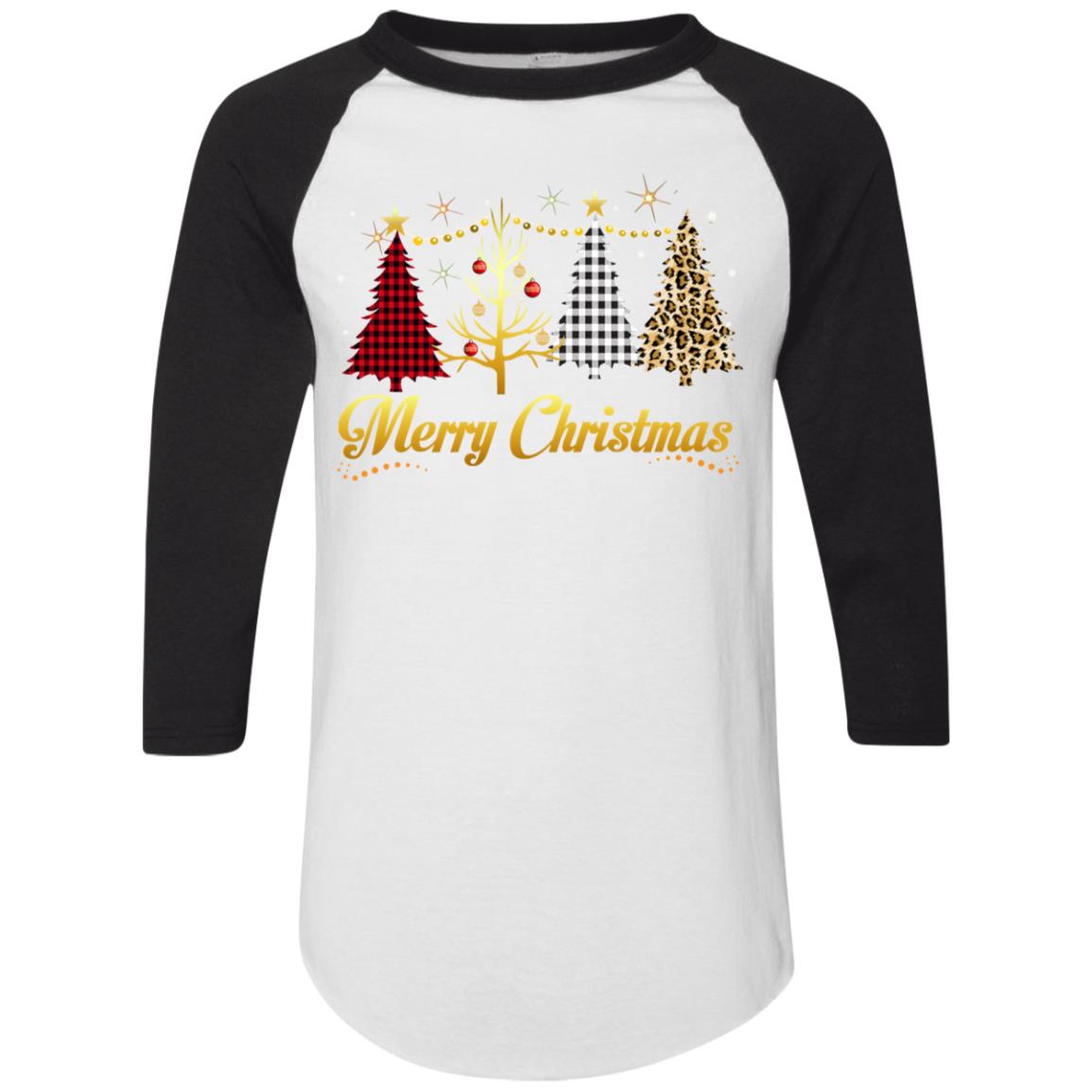 Christmas Tree Merry Christmas 3/4 Raglan Jersey Shirt – Baseball Tee