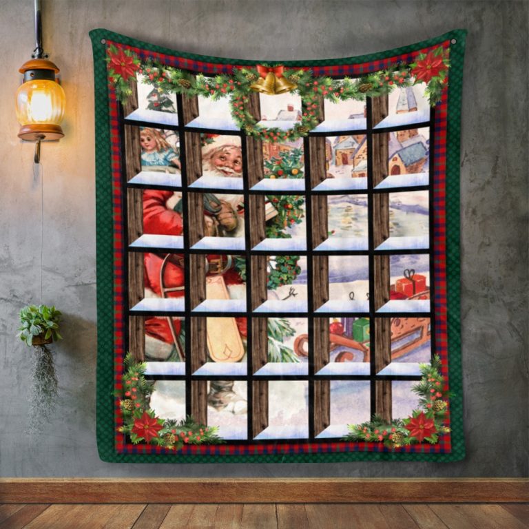 Let’s Shop Christmas Glass Santa Fleece Blanket – Mink Sherpa Blanket – Woven Blanket – Christmas Blanket Gift!