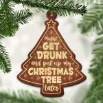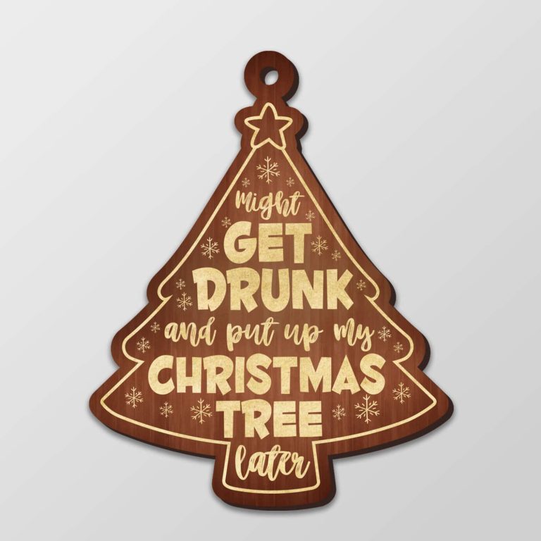 Let’s Shop Might Get Drunk and Put My Christmas Tree Later Custom Shaped Wooden Christmas Ornament!