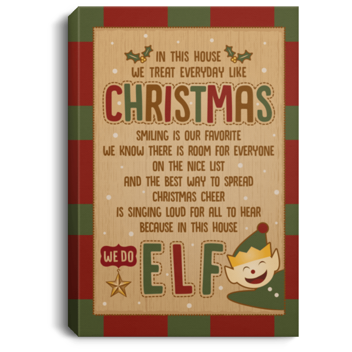 In This House We Treat Everyday Like Christmas We Do Elf Framed Canvas – Unframed Poster
