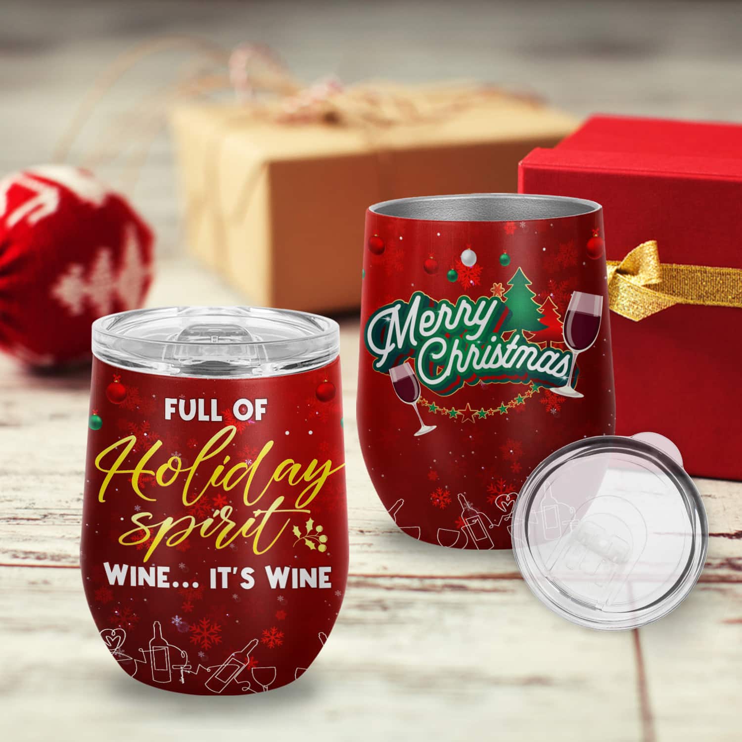 Let’s Shop Full Of Holiday Spirit Wine It’s Wine Vacuum Insulated Cup – Christmas Wine Tumbler with Lid!