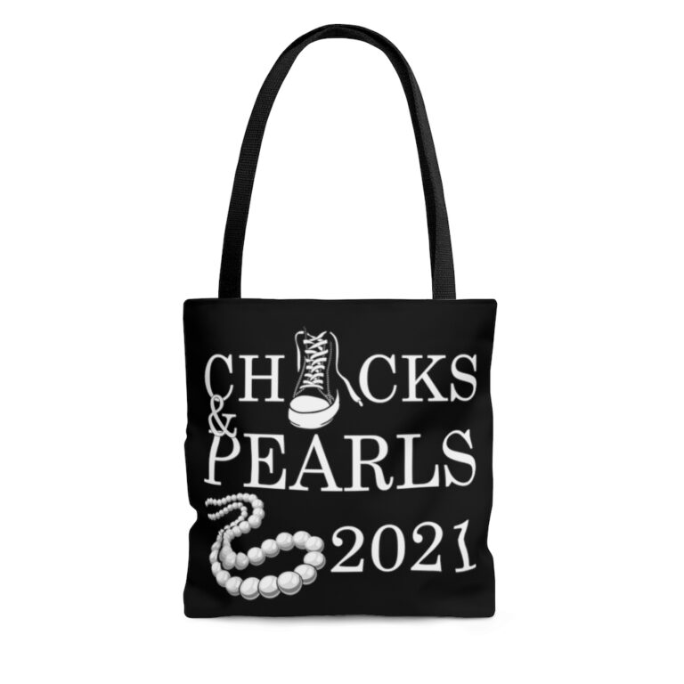 Let’s Shop Chucks and Pearls 2021 Kamala Harris All Over Print Tote Bag – Women Vice President Shoulder Bag!
