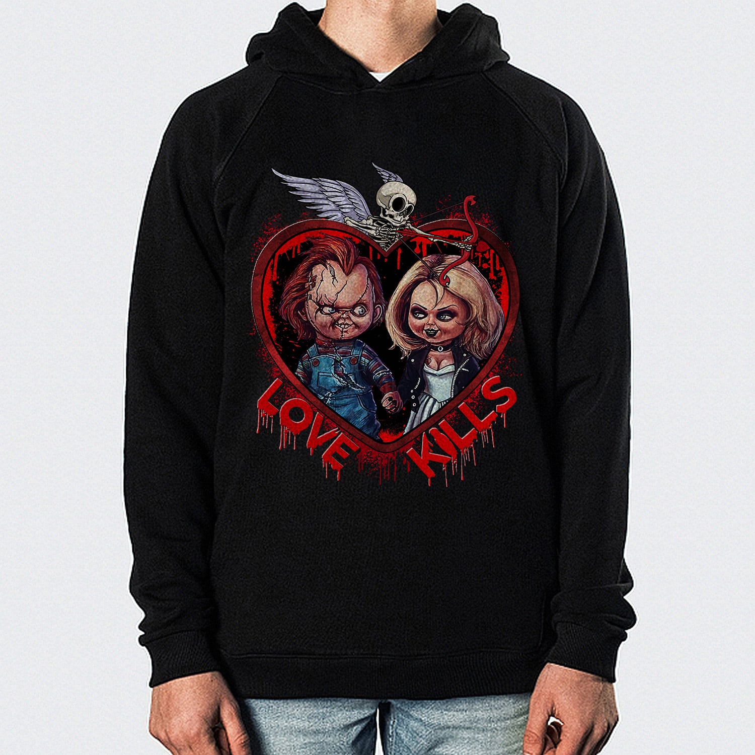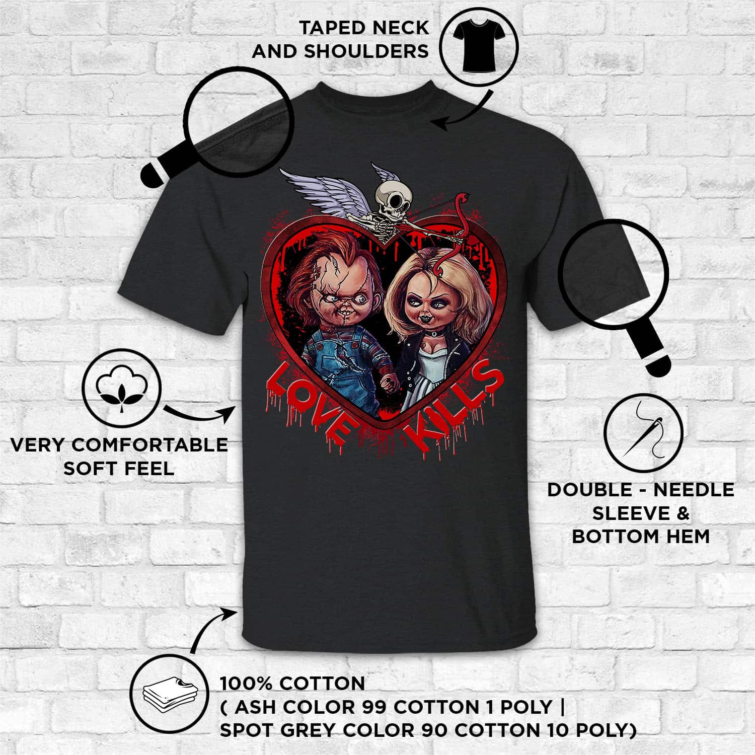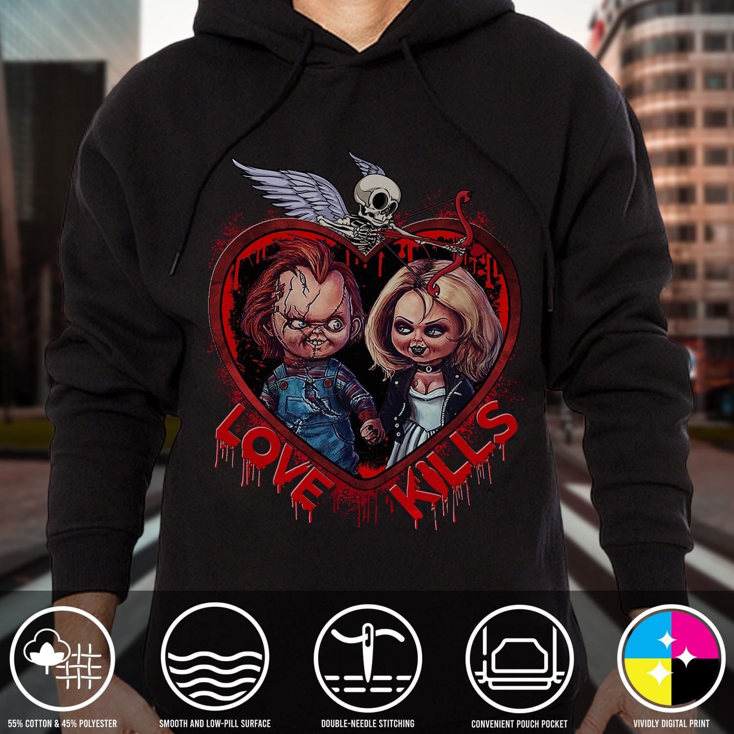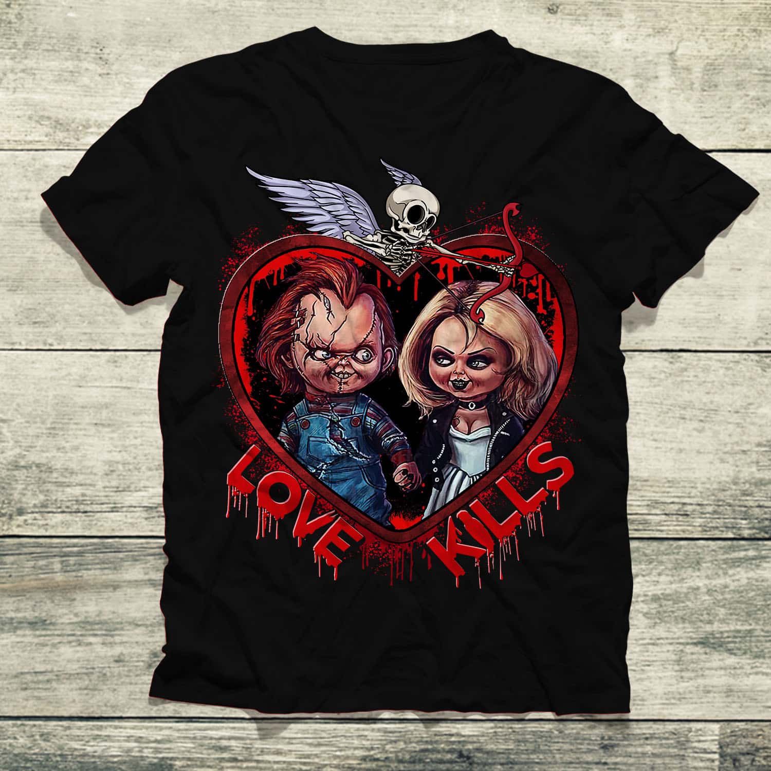 Are you spending too much time to find creative merchandise for you or suitable & special gifts for your mommy, your daddy, your son, your daughter, your children, your friends or someone you love? The struggle is over because we have various Chucky and Tiffany Shirt, Love Kills Shirt, Love Kills Chucky Shirt, Child’s Play Shirt, Horror Movie Character Shirt, Chucky Shirt, Chucky Movie Shirt, Halloween Shirt, Halloween Hoodie, Chucky and Tiffany Hoodie, Love Kills Hoodie which will make perfect presents for your beloveds. In order to make your present stand out, we have created lots of unique and awesome customized photo gifts & personalized designs.