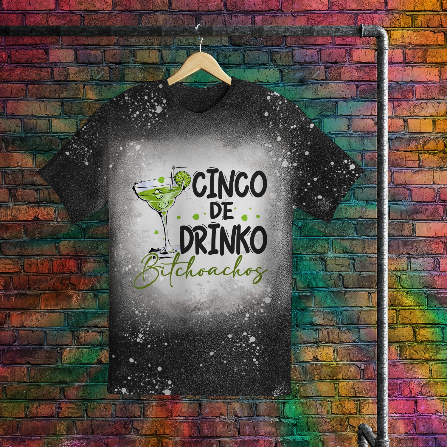 NOTE: The Paint Flake Effect will be generated at random; there will be no specific pattern. Please note that the paint effect will not be identical to the image mockup. The size of the bleached area in the center of the shirt is not fixed; it will correlate to the design’s size.