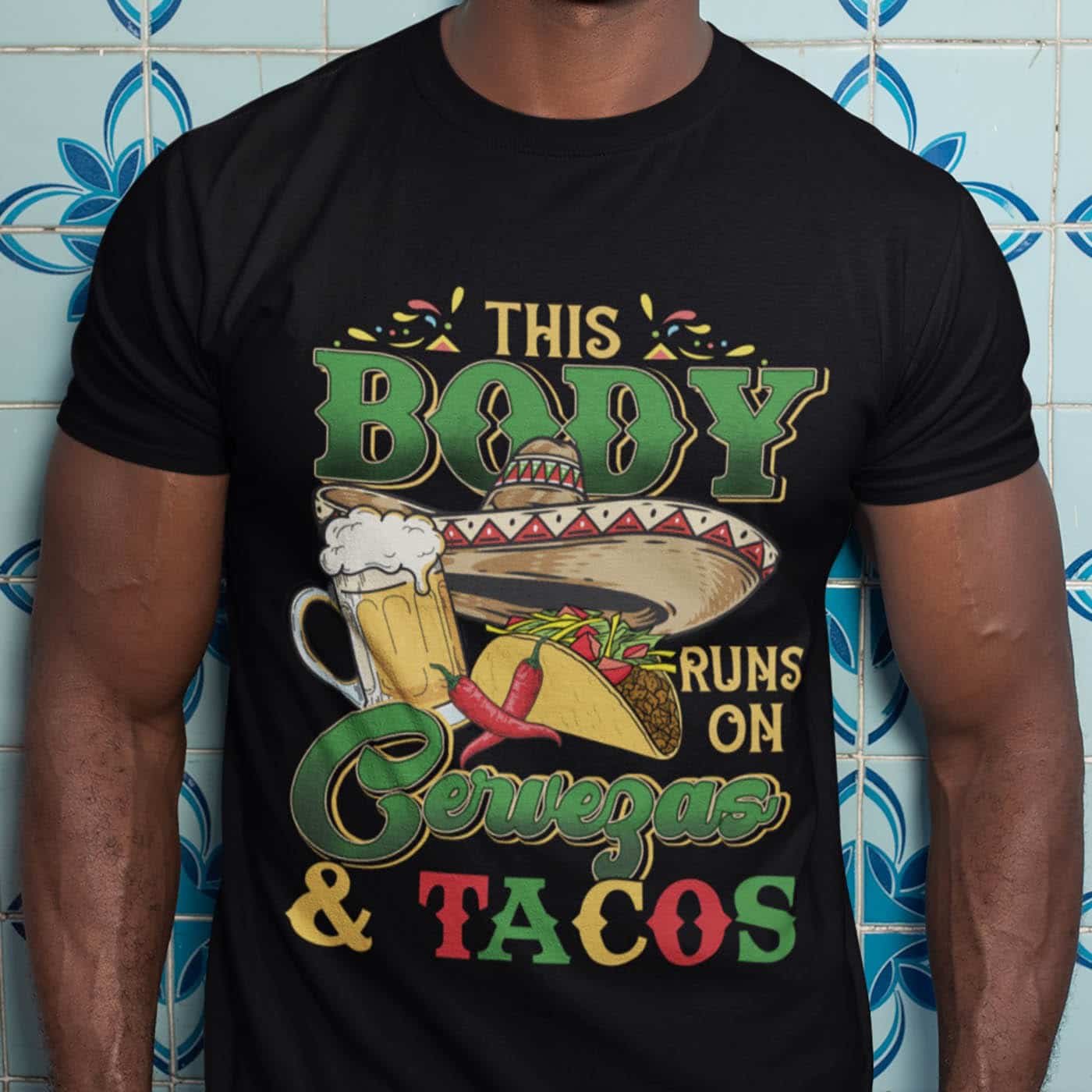 This Body Runs On Cervezas And Tacos Happy Cinco De Mayo T-Shirt – V-Neck Shirt