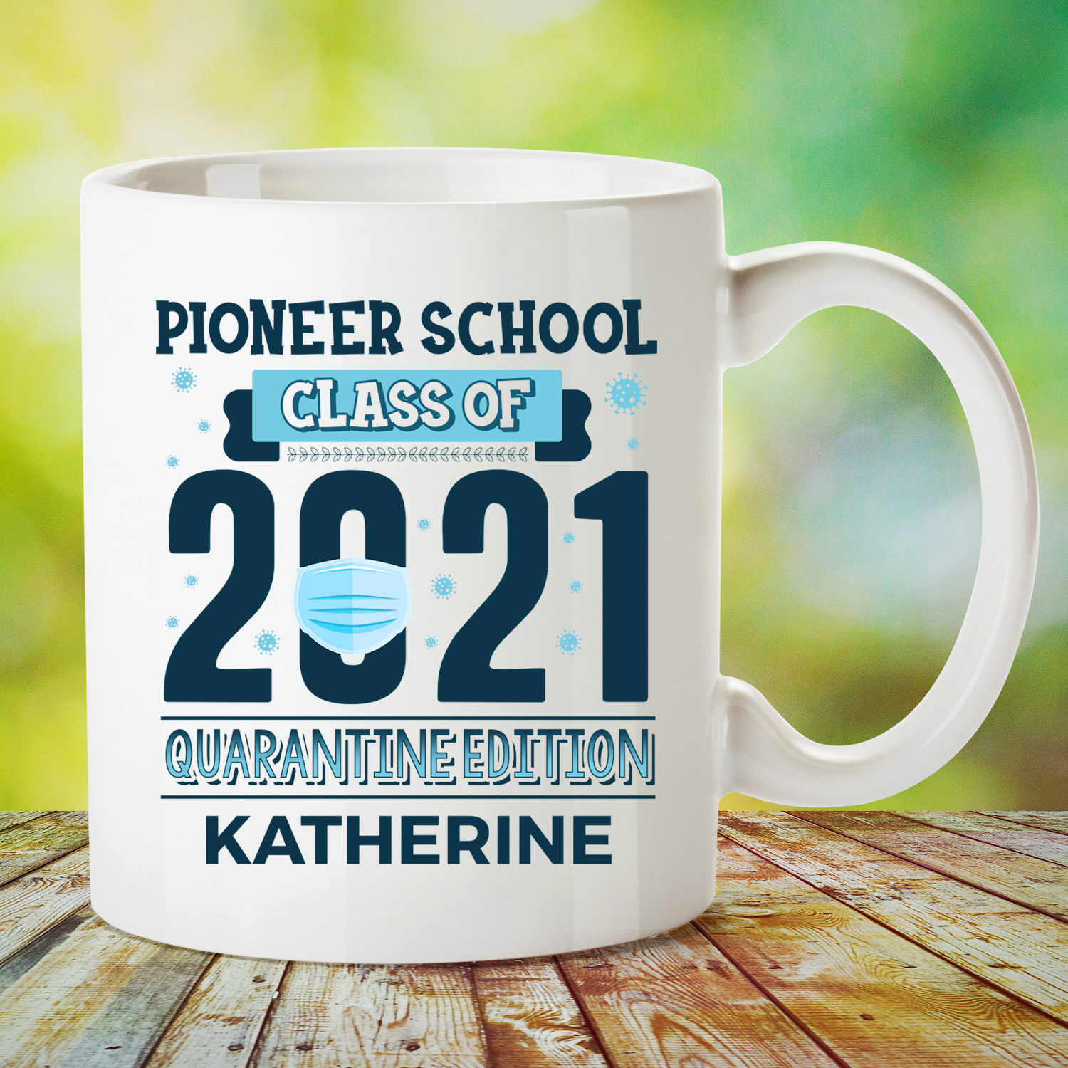 Let’s Shop Personalized Pioneer School Class of 2021 Quarantine Edition Ceramic Coffee Mug – Beer Stein – Water Bottle!