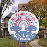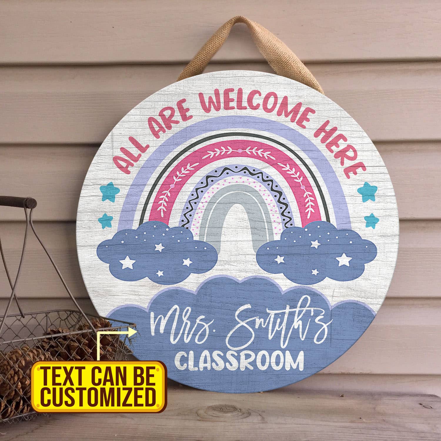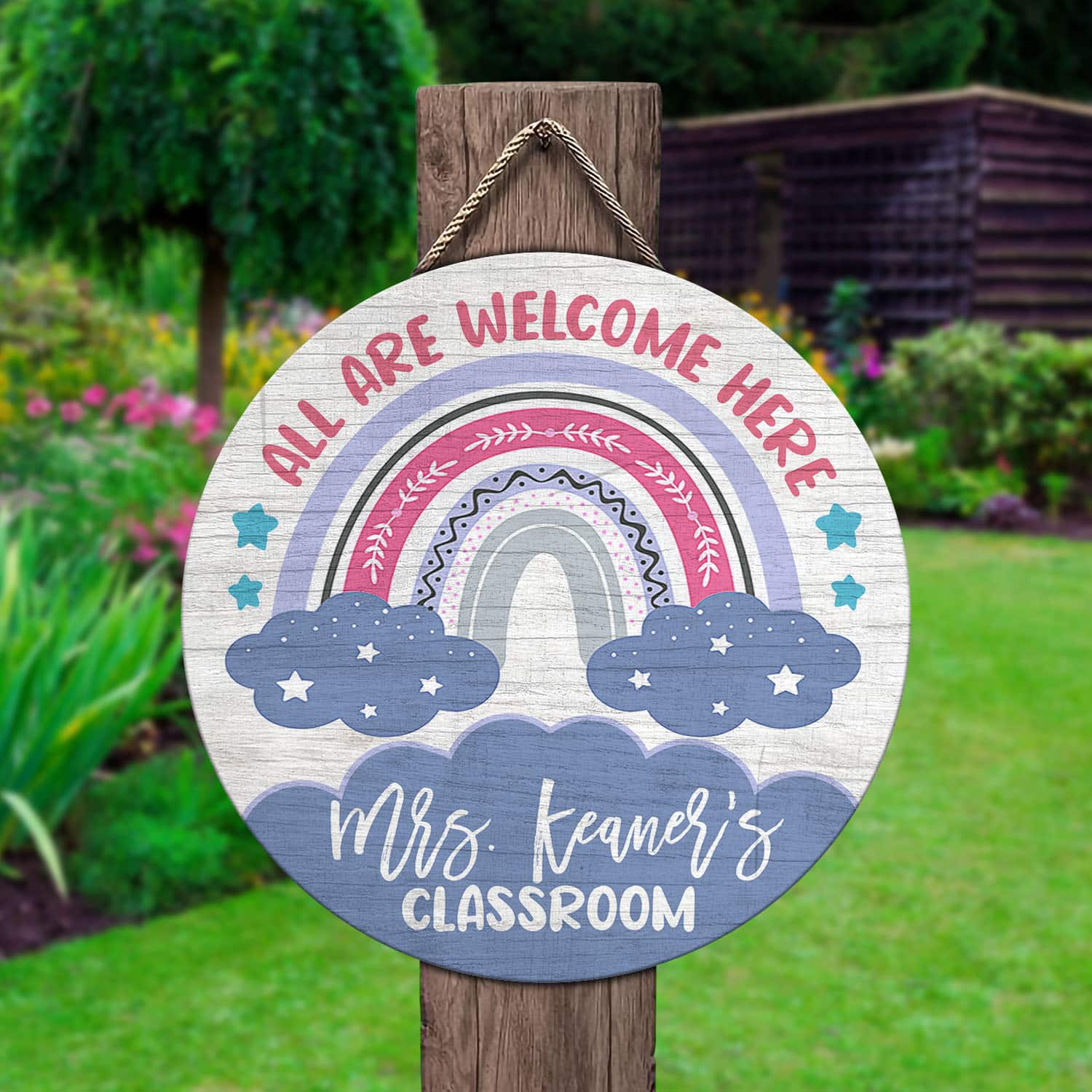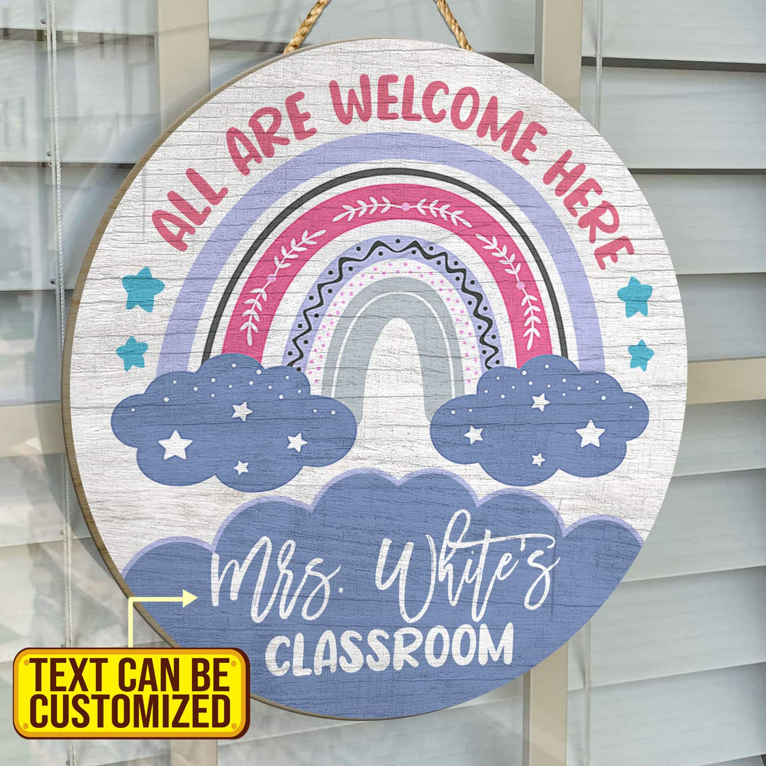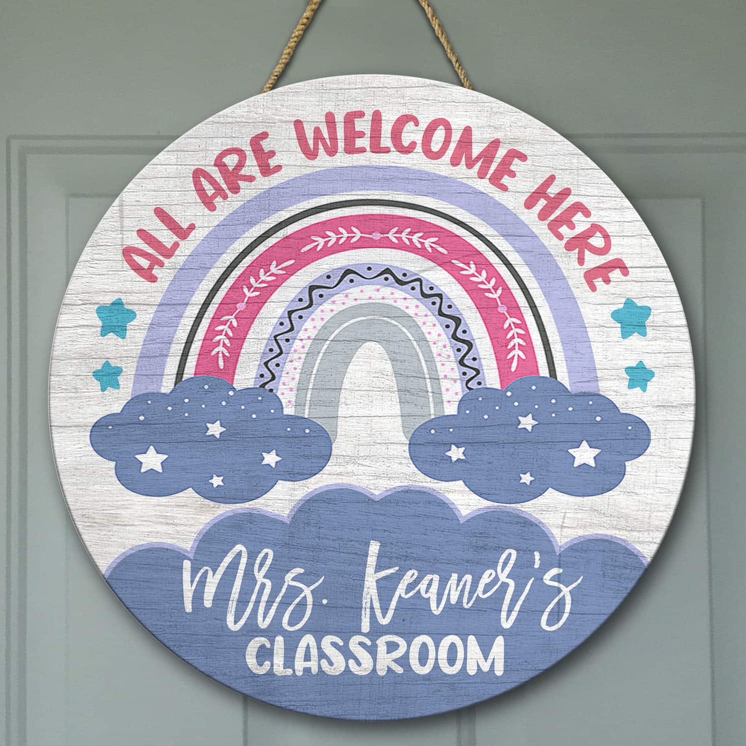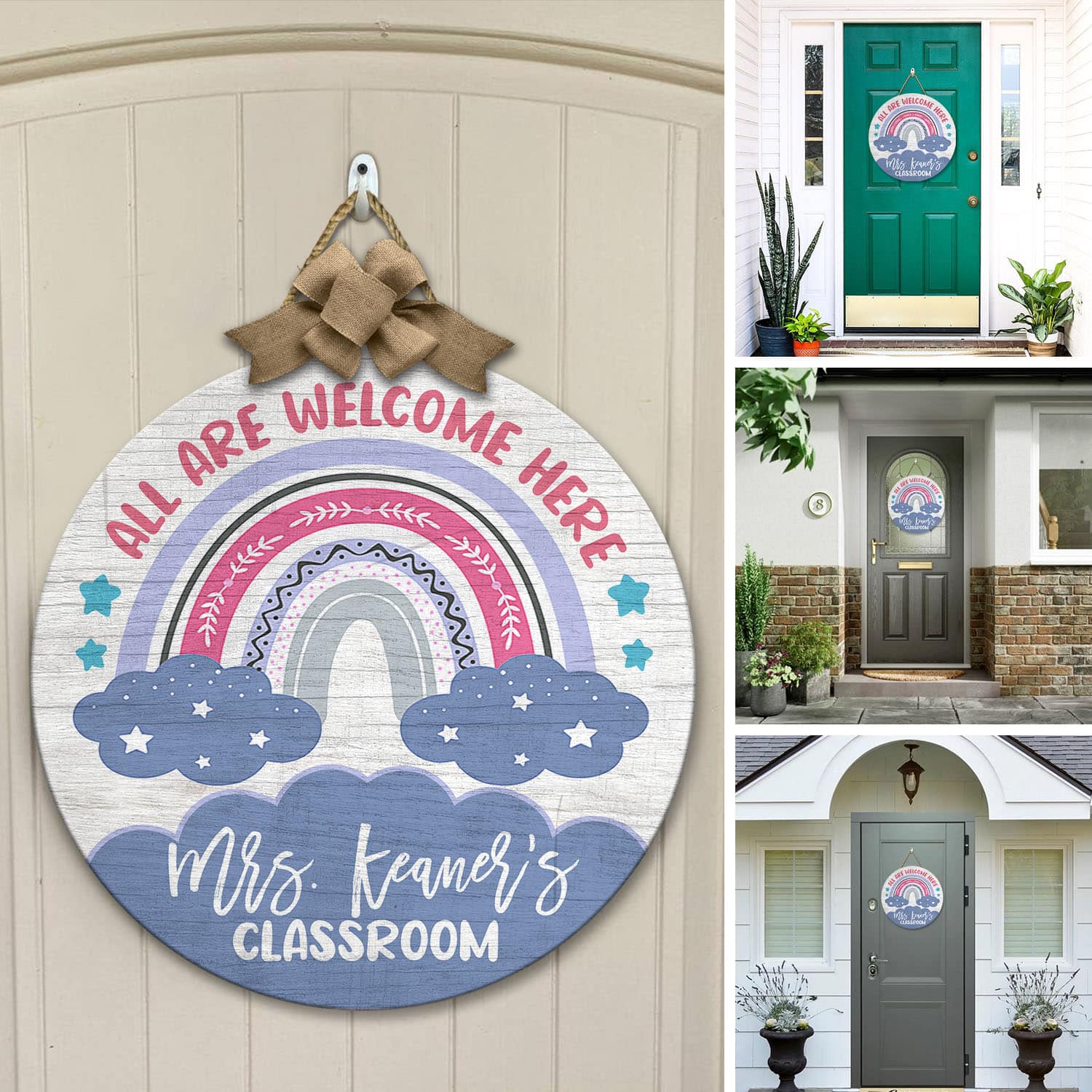 Let’s Shop Personalized All Are Welcome Here Teacher Classroom Wooden Front Door Sign – Custom Teacher Welcome Sign For Front Porch!