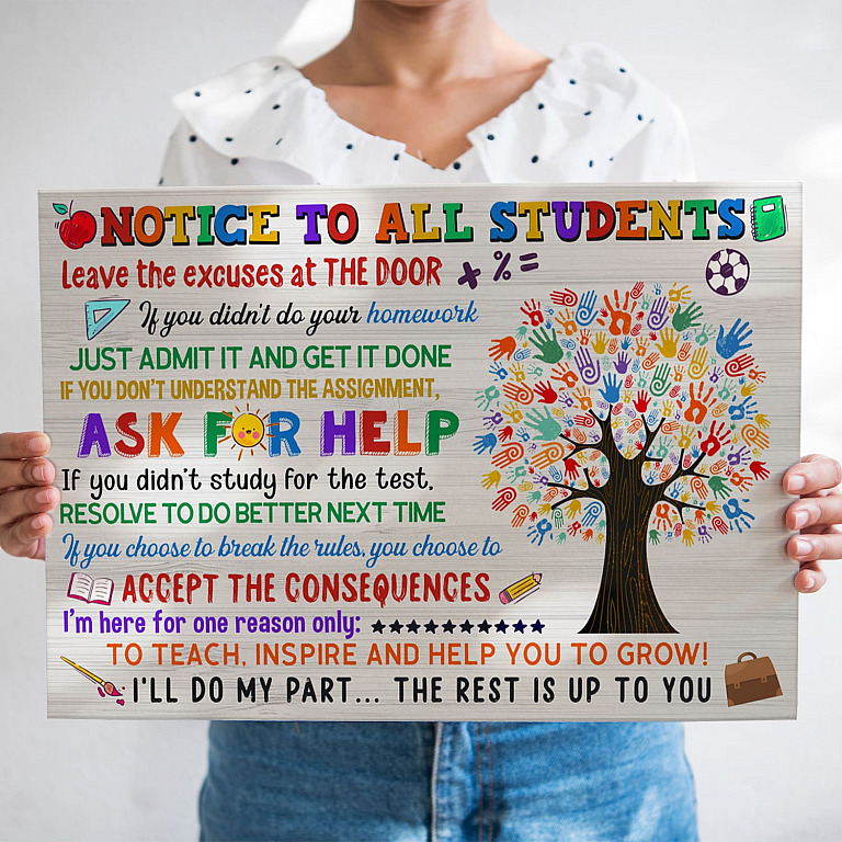 At CubeBik, besides canvases, we also offer tees, hoodies, sweaters, raglans, tanks, wall arts, posters, mugs, blankets, engraved jewelry, personalized necklaces, printed face masks, throw pillows, tote bags, hats, accessories and more on our website, so do not miss our other Notice to All Students, Keep Calm Collection Notice to All Students, Notice to All My Students Poster 24 X 36, Notice to All Students Motivational Classroom Poster, Teacher Poster, School Poster, Classroom Poster Back to School Poster, Classroom Rules Poster, School Posters for Classroom, Cute Classroom Posters related merchandise. Moreover, all the products are made-to-order and one of a kind custom designs you can’t get elsewhere in normal stores. Let’s discover CubeBik.com now and find your favorite personalized items. We can’t wait to surprise and build beautiful memories with you and your loved ones.