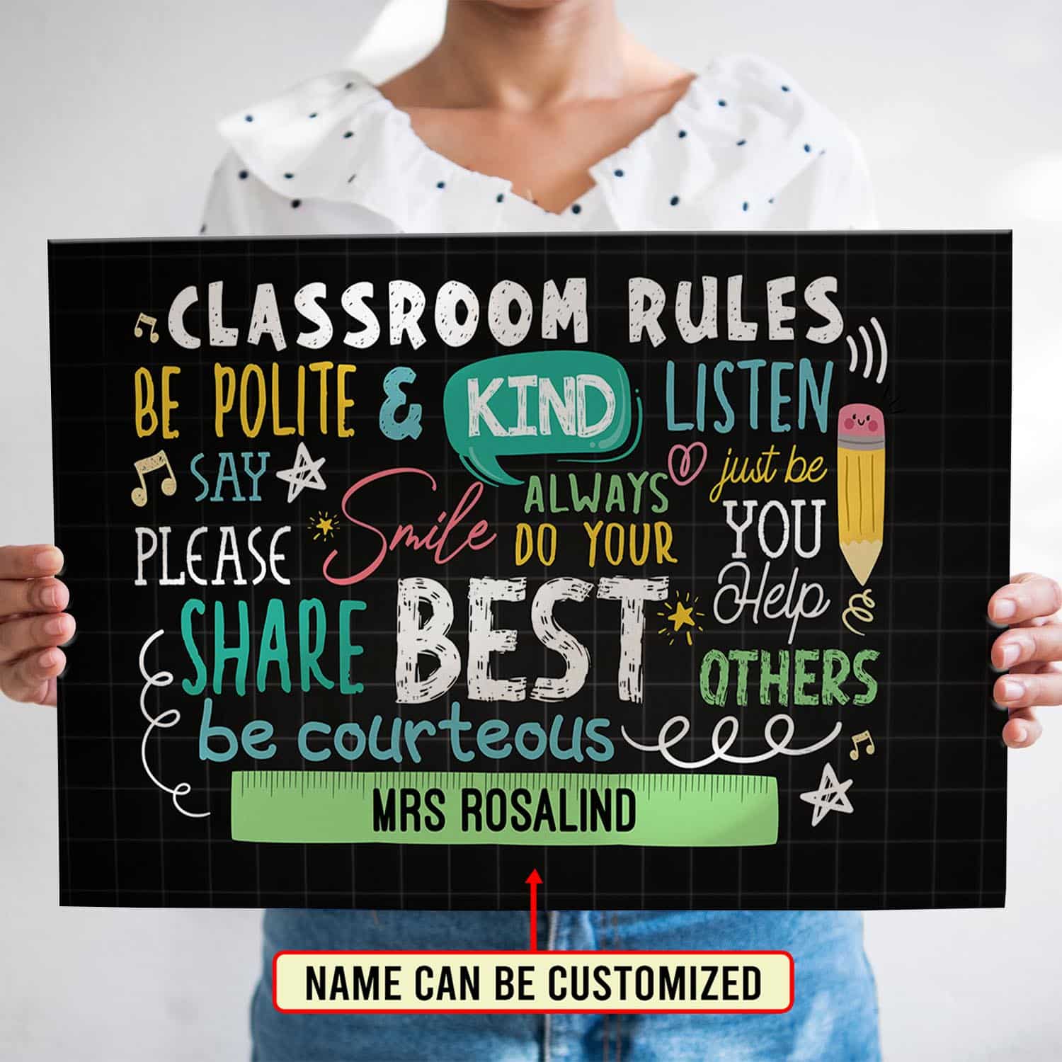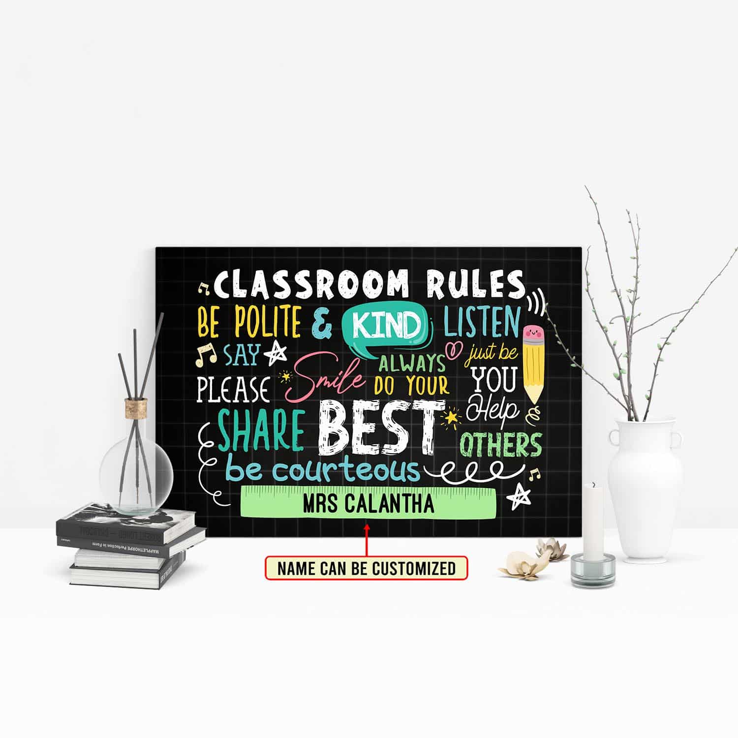 Let’s Shop Personalized Classroom Rules Gallery Wrapped Framed Canvas Prints – Unframed Poster – Home Decor Wall Art!