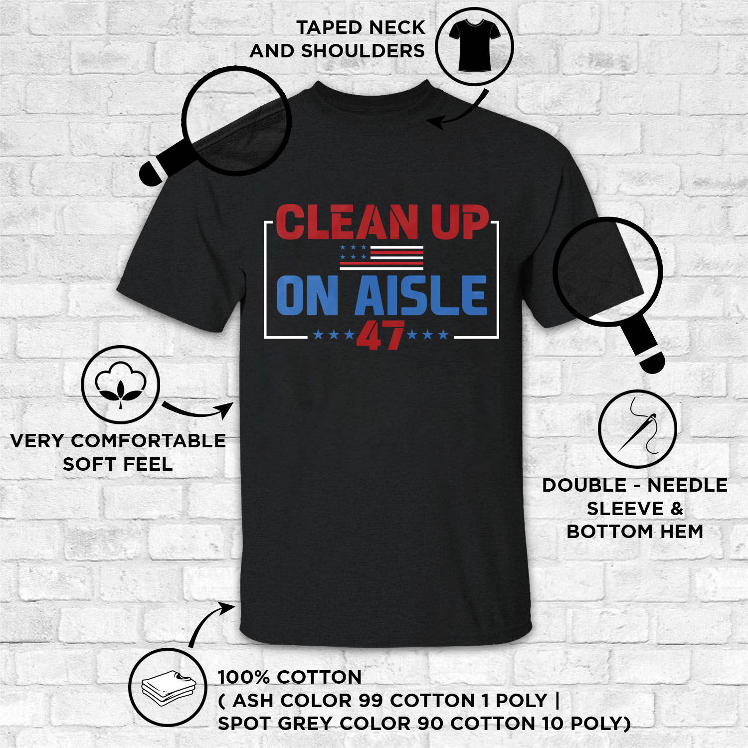 At CubeBik, besides custom apparel, we also offer tees, hoodies, sweaters, raglans, tanks, wall arts, canvases, posters, mugs, blankets, engraved jewelry, personalized necklaces, printed face masks, throw pillows, tote bags, hats, accessories and more on our website, so do not miss our other Clean Up on Aisle 47 Shirt Women, Clean Up on Aisle 47 Shirt, Clean Up on Aisle 47 T-Shirt, Clean Up on Aisle 47, Funny Trump Shirt, Clean Up on Aisle Trump Shirt, Clean Up on Aisle 47 Hat, Clean Up on Aisle 47 Trump Hat, Clean Up on Aisle 47 Trump Cap. Moreover, all the products are made-to-order and one of a kind custom designs you can’t get elsewhere in normal stores. Let’s discover CubeBik.com now and find your favorite personalized items. We can’t wait to surprise and build beautiful memories with you and your loved ones.