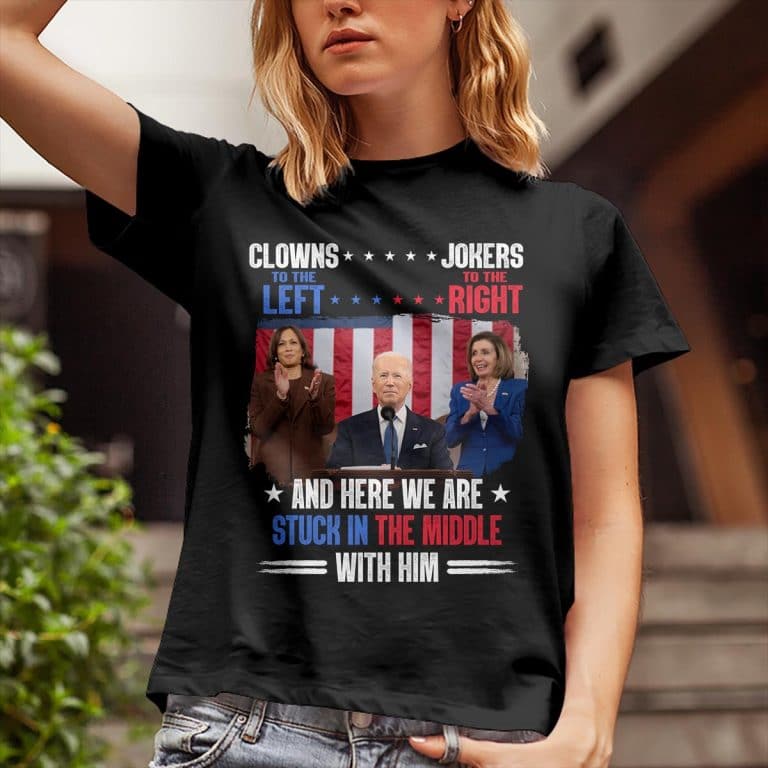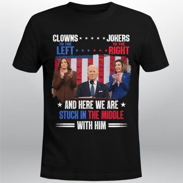 Let’s Shop Clowns To The Left Jokers To The Right And Here We Are Stuck In The Middle With Him Anti Biden Kamala Pelosi T-Shirt!