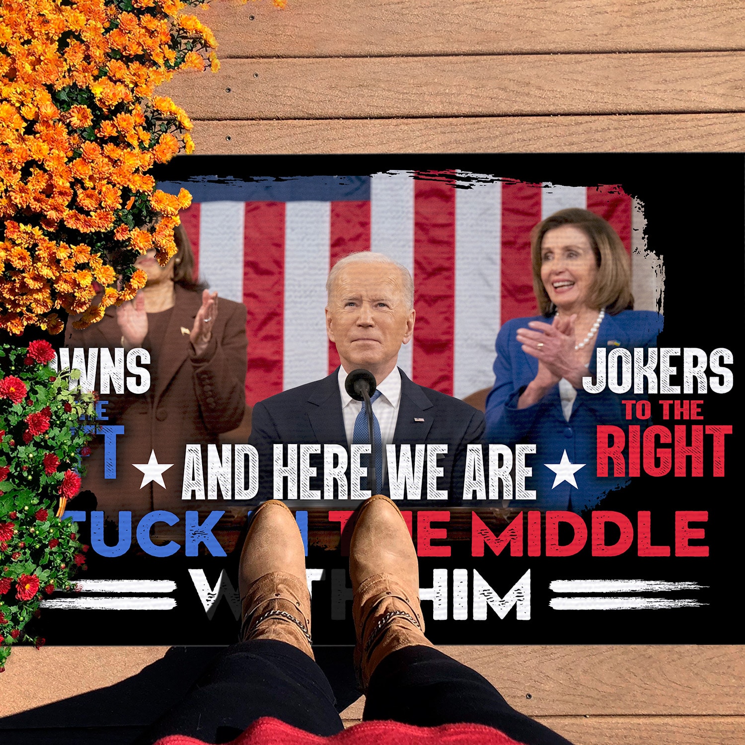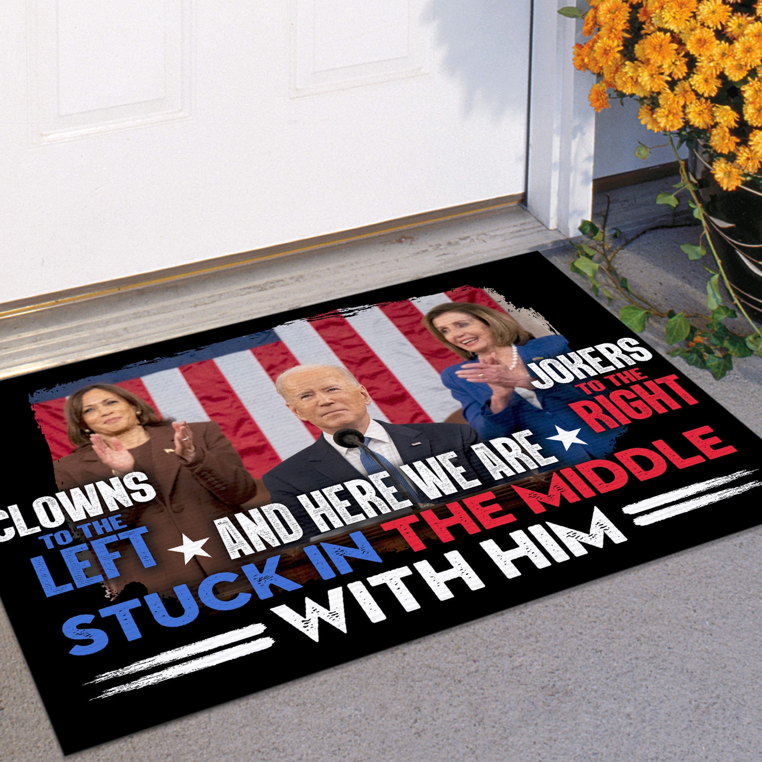 Are you spending too much time to find creative merchandise for you or suitable & special gifts for your mommy, your daddy, your son, your daughter, your children, your friends or someone you love? The struggle is over because we have various Clowns To The Left Jokers To The Right And Here We Are Stuck In The Middle With Him, An-ti Biden Doormat, Wipe Your Feet Here Doormat, Biden Brain Dead Idiot, Biden Idiot Doormat, Biden I Did That, Biden Clown Doormat, Biden Idiot Doormat, Joe Biden Rigged Election, Biden Not My President which will make perfect presents for your beloveds. In order to make your present stand out, we have created lots of unique and awesome customized photo gifts & personalized designs.