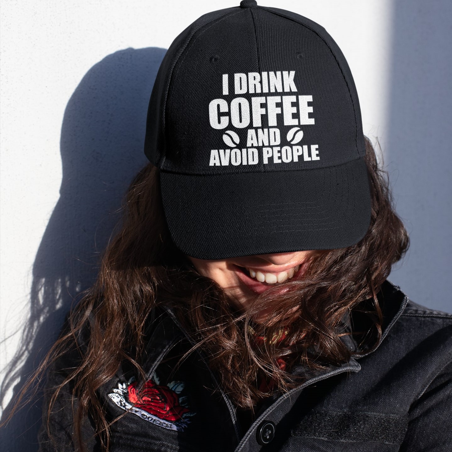 Let’s Shop I Drink Coffee And Avoid People Funny Twill Cap – High-Profile Snapback Hat – Coffee Lover Trucker Hat!