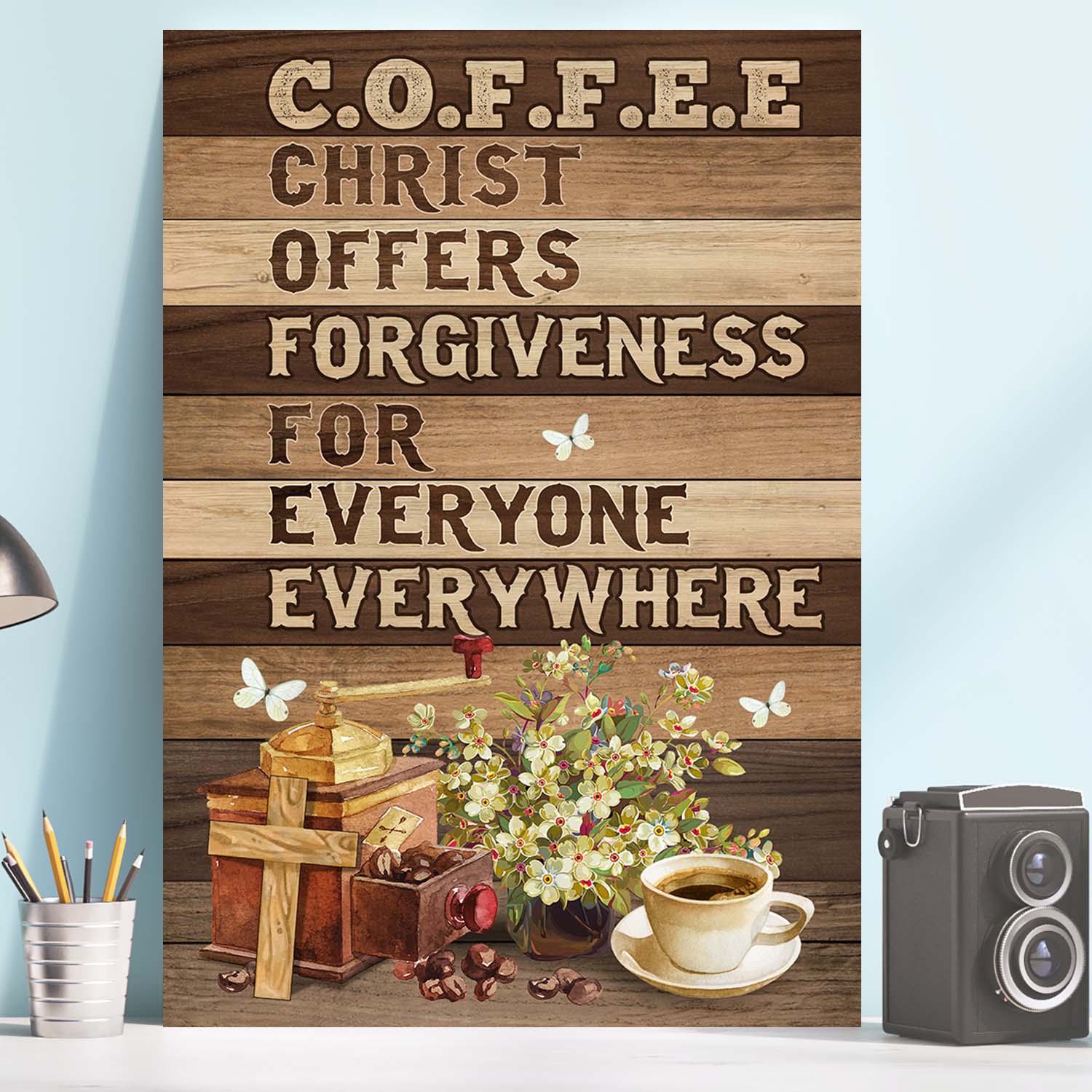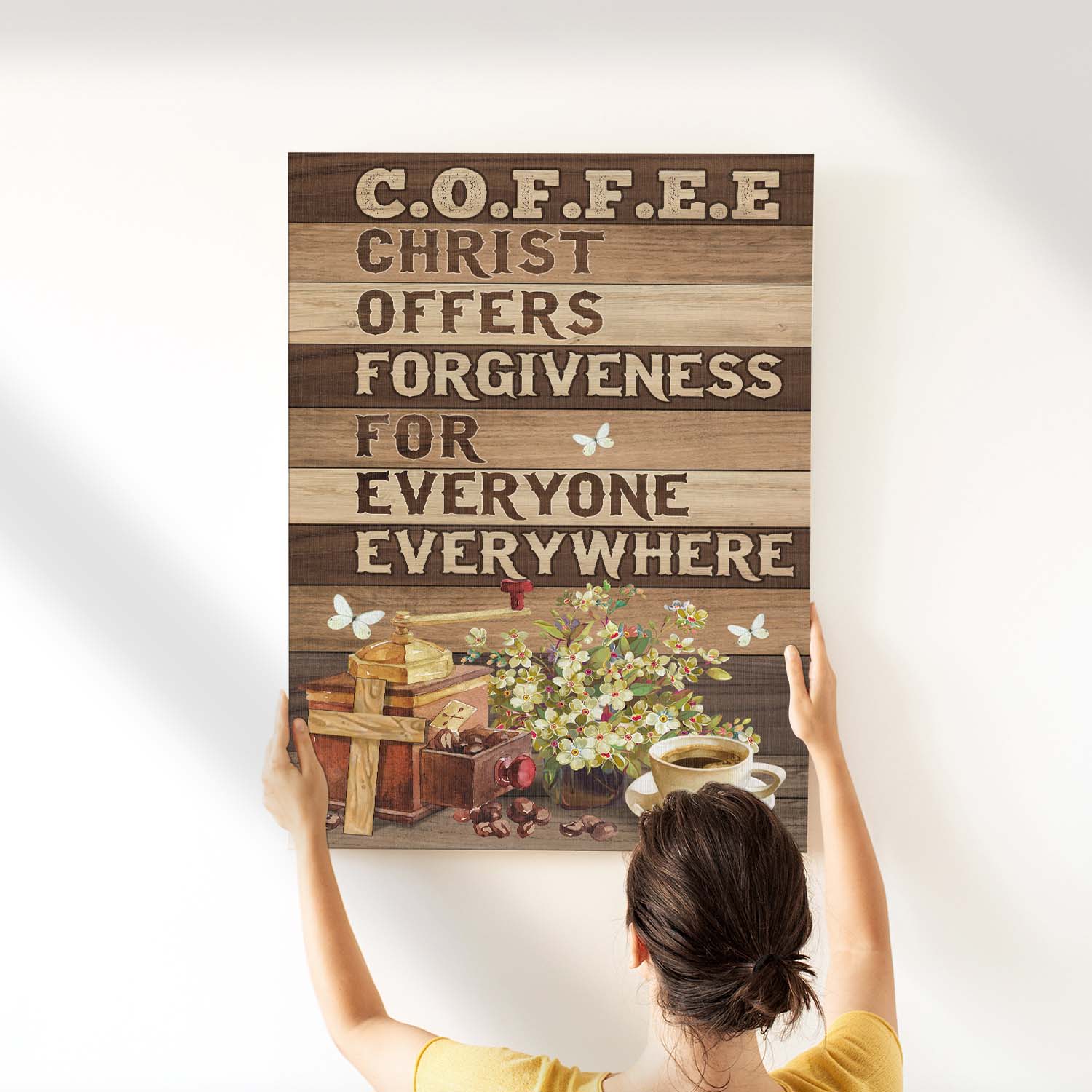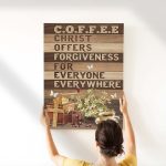 Let’s Shop Coffee Christ Offers Forgiveness For Everyone Everywhere Jesus Framed Canvas Prints – Wall Art – Poster!