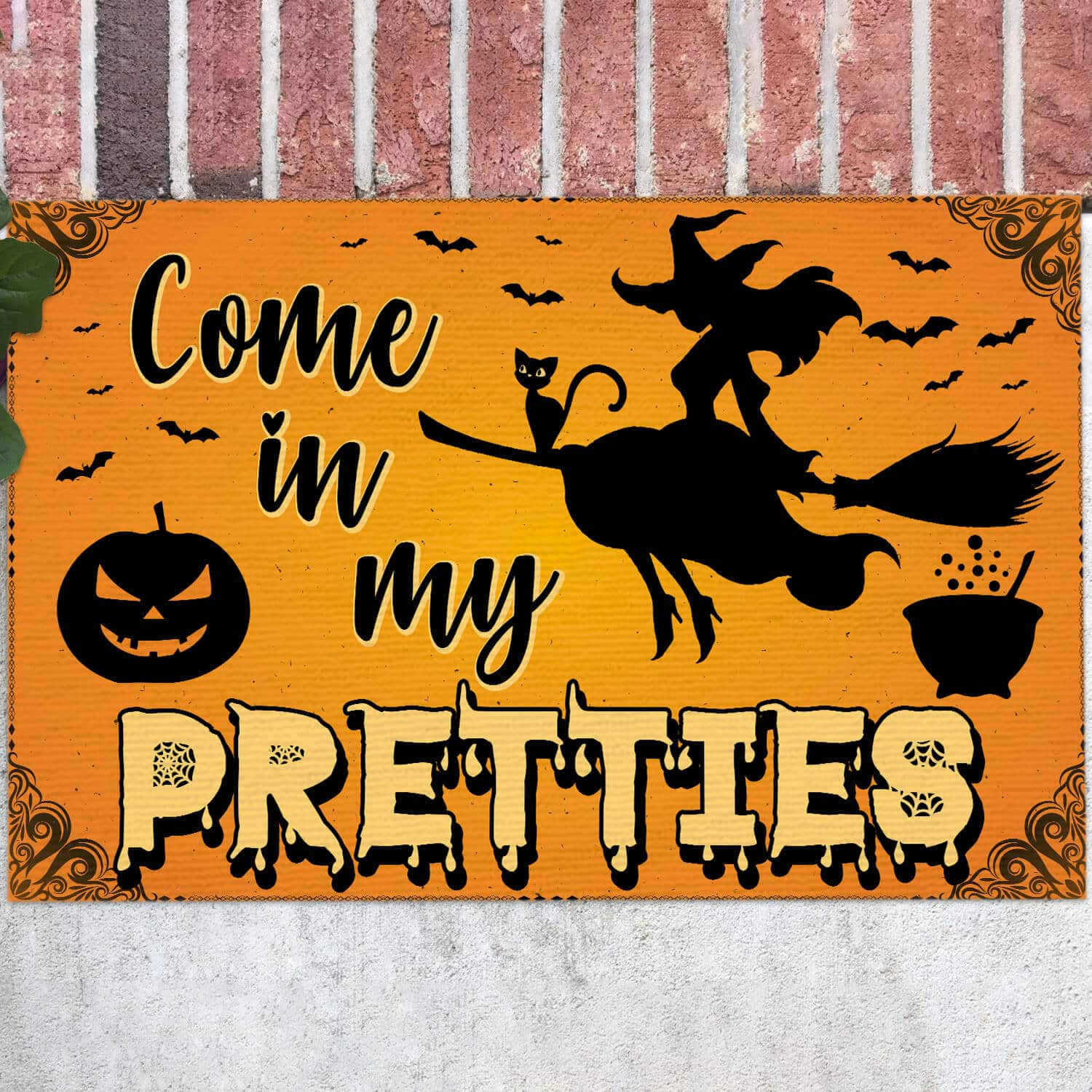 Let’s Shop Come in My Pretties Doormat – Funny Halloween Witch Indoor Outdoor Decorative Doormat!