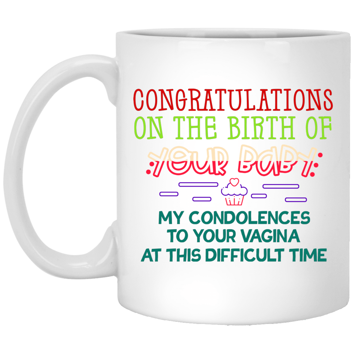 Congratulations On The Birth Of Your Baby My Condolences To Your Vagina Coffee Mug – Beer Stein-Water Bottle