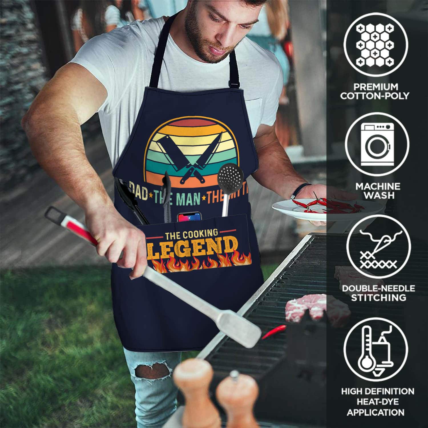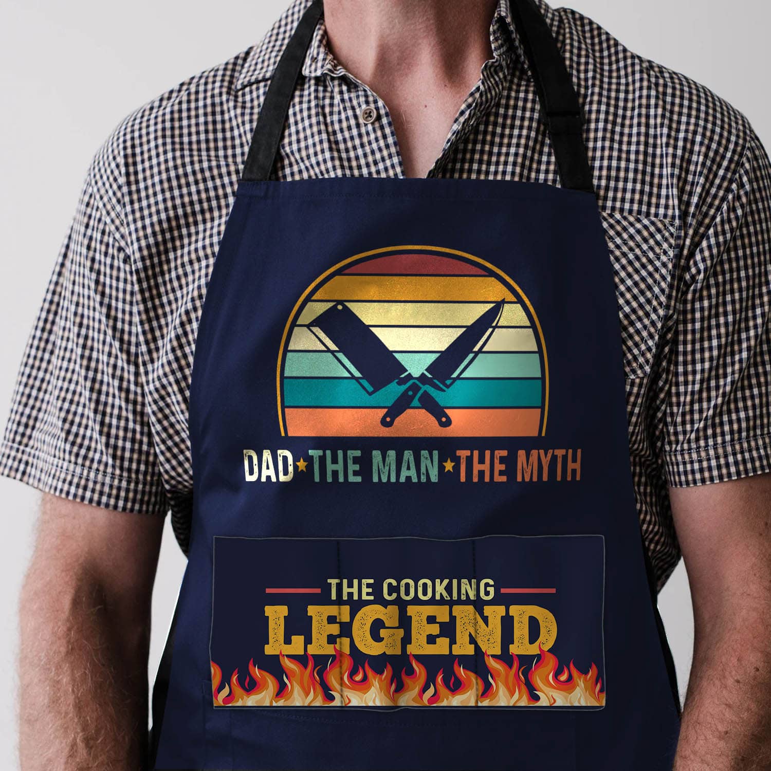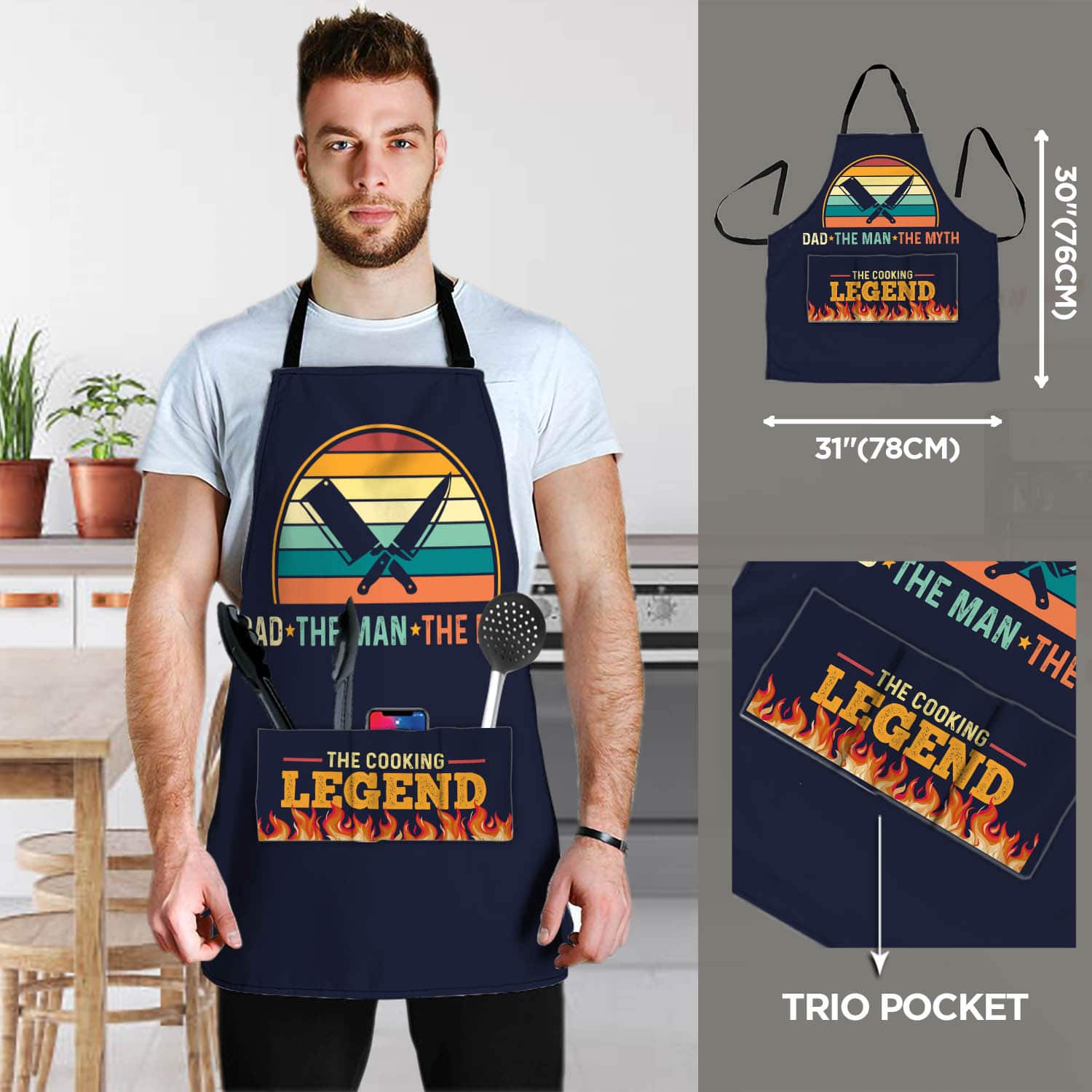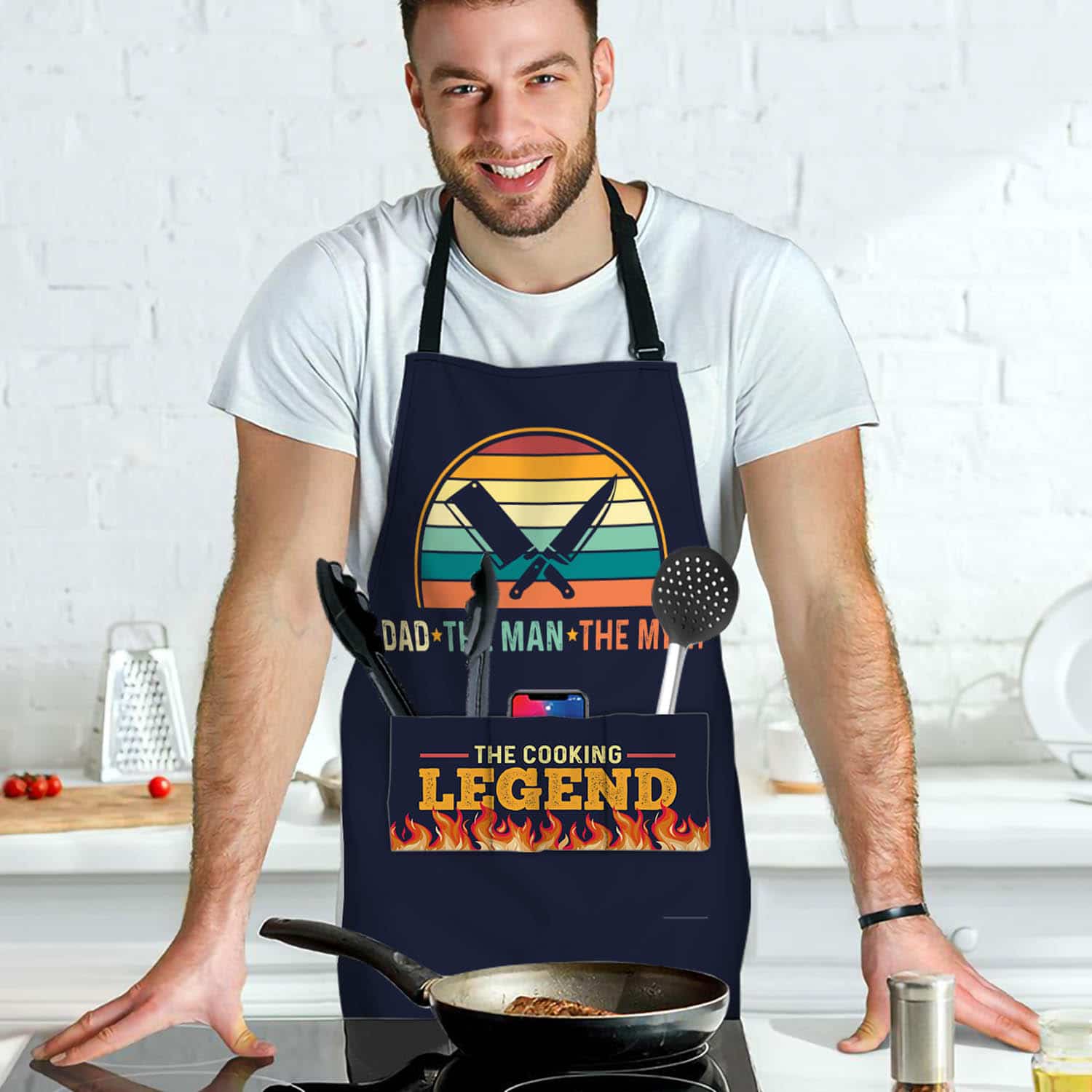 Let’s Shop Dad The Man The Myth The Cooking Legend Funny Cooking Apron With Three Pockets!