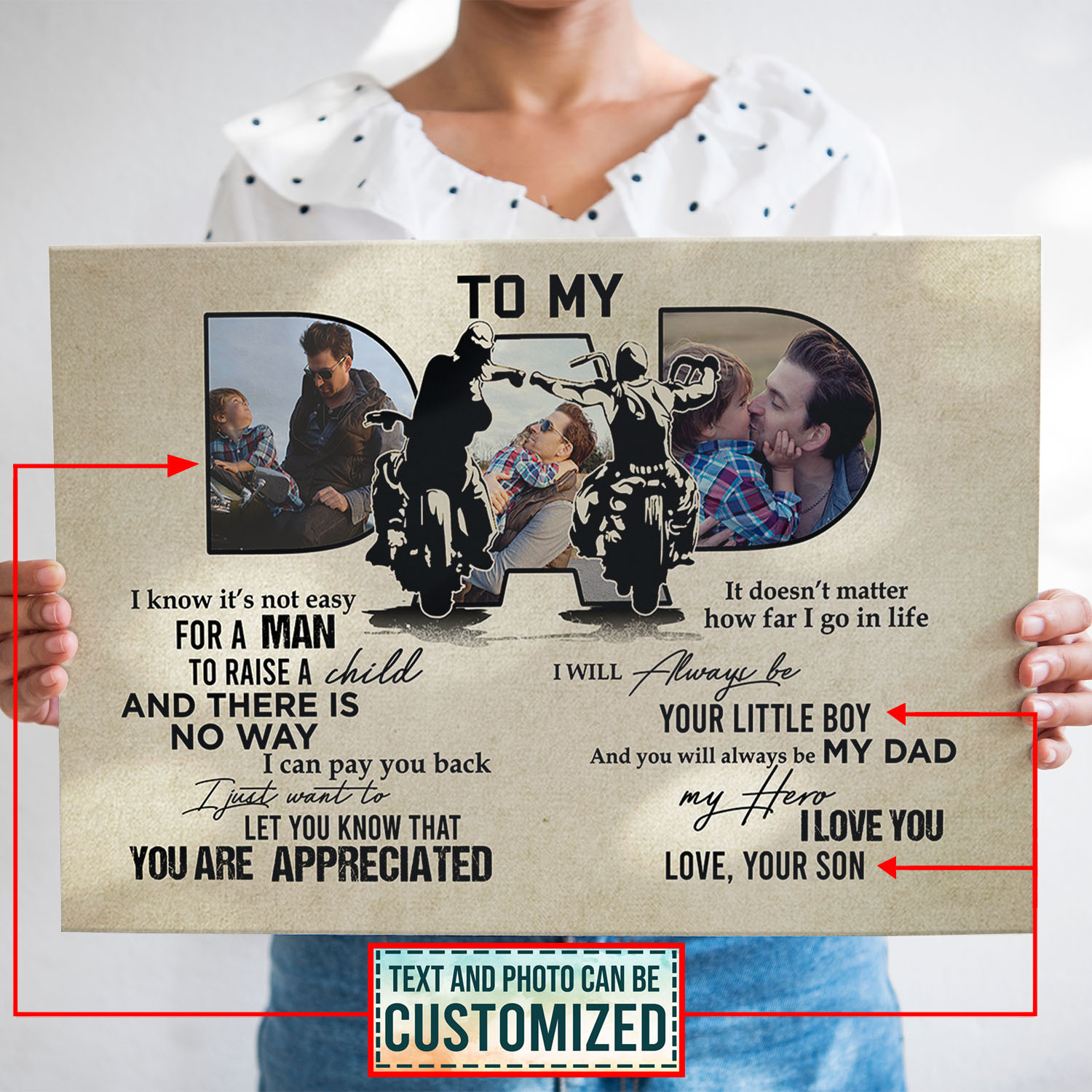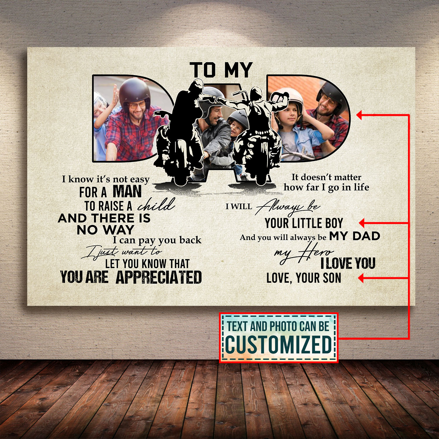Let’s Shop Personalized Photo To My Biker Dad To Raise A Child Motorcycle Club Dad Father’s Day Customized Canvas Poster!