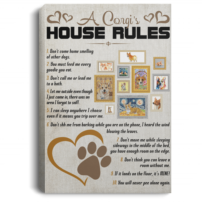 A Corgi’s House Rules Funny Framed Canvas – Unframed Poster