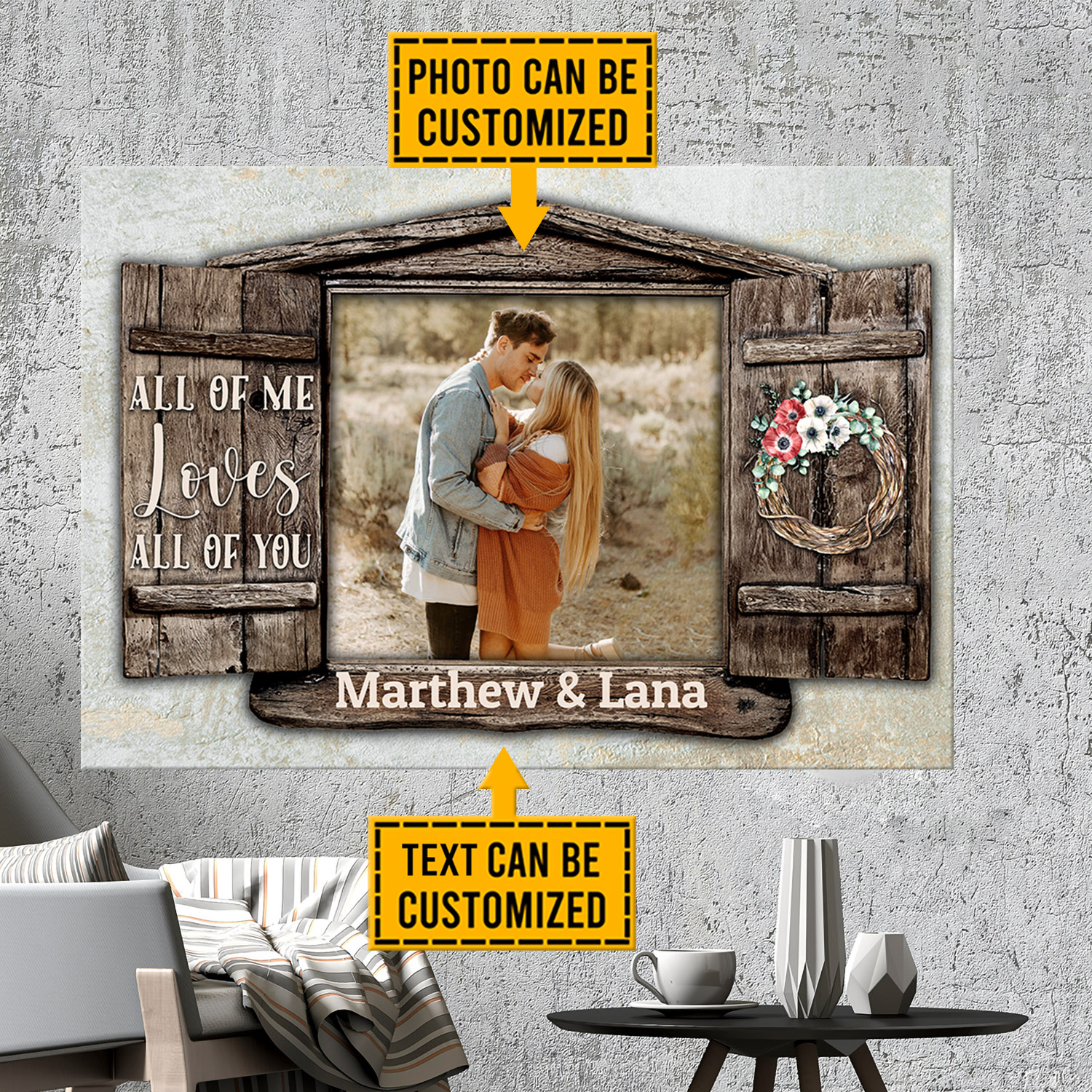 Let’s Shop Personalized Photo Couple Saying All Of Me Loves All Of You Anniversary Family Picture Canvas Poster Wall Art!